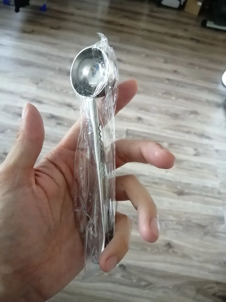 Качество на 3 и основная претензия заключается в том что в месте спайки ручки торчала тонкая проволка, которая могла отломиться в пищу и этот дефект недопустим. Также в месте спайки желтые пятна. На поверхности много потертостей и мелких царапин. И лично для меня размер оказался великоват. Больше подойдет для больших упаковок.
