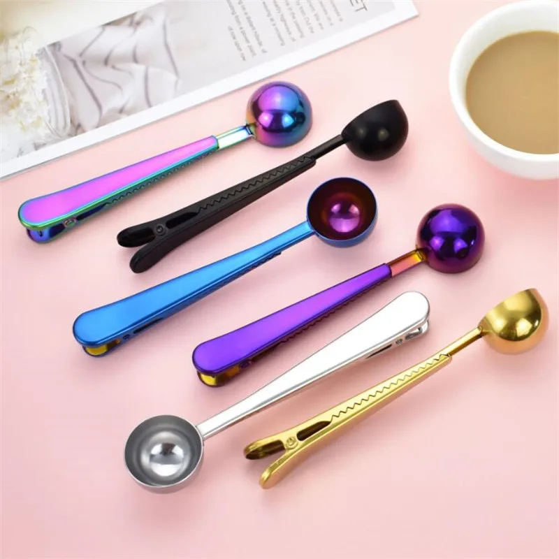 Кофейная ложка 2 в 1 из нержавеющей стали с зажимом для кухни, золотые аксессуары, украшение для кафе, эспрессо