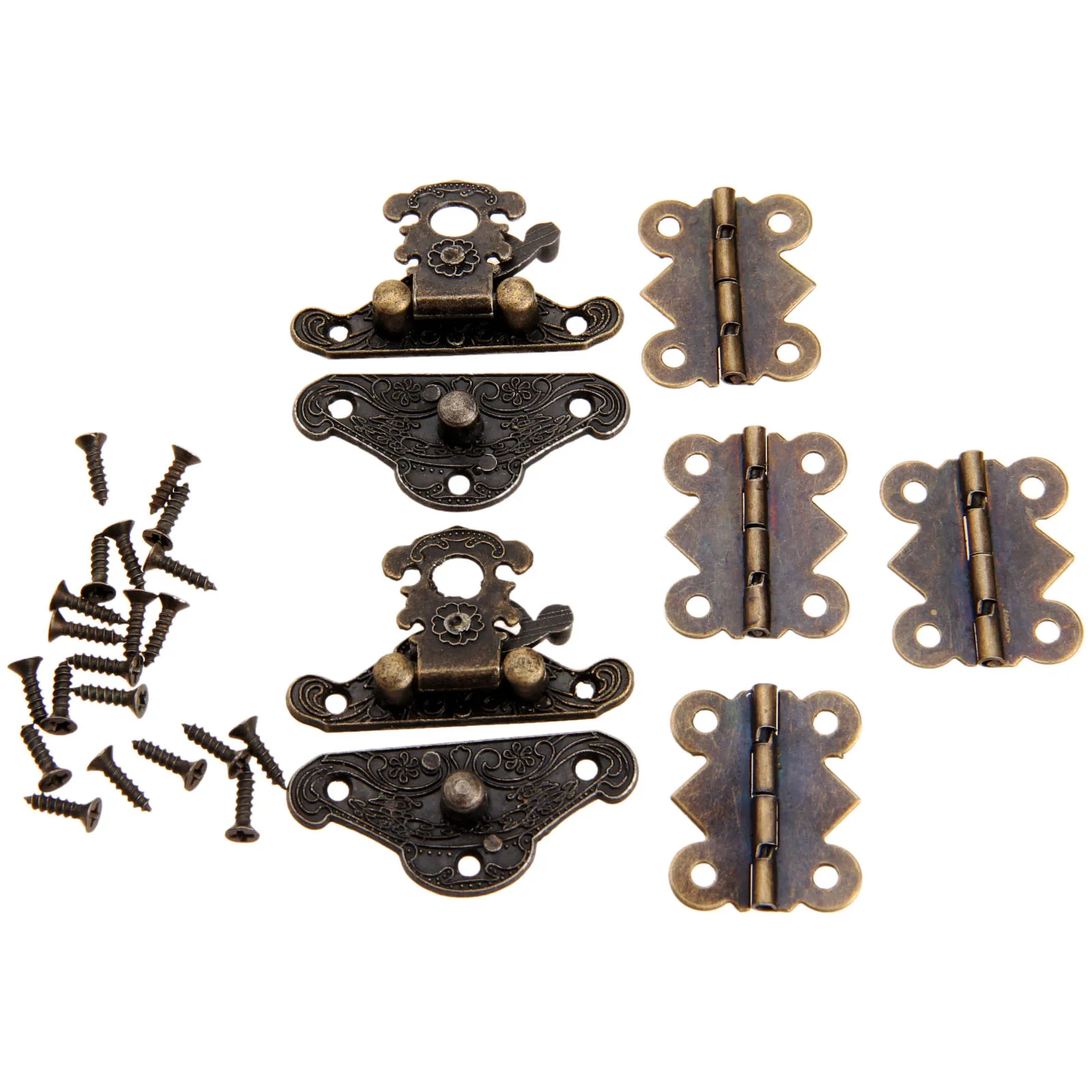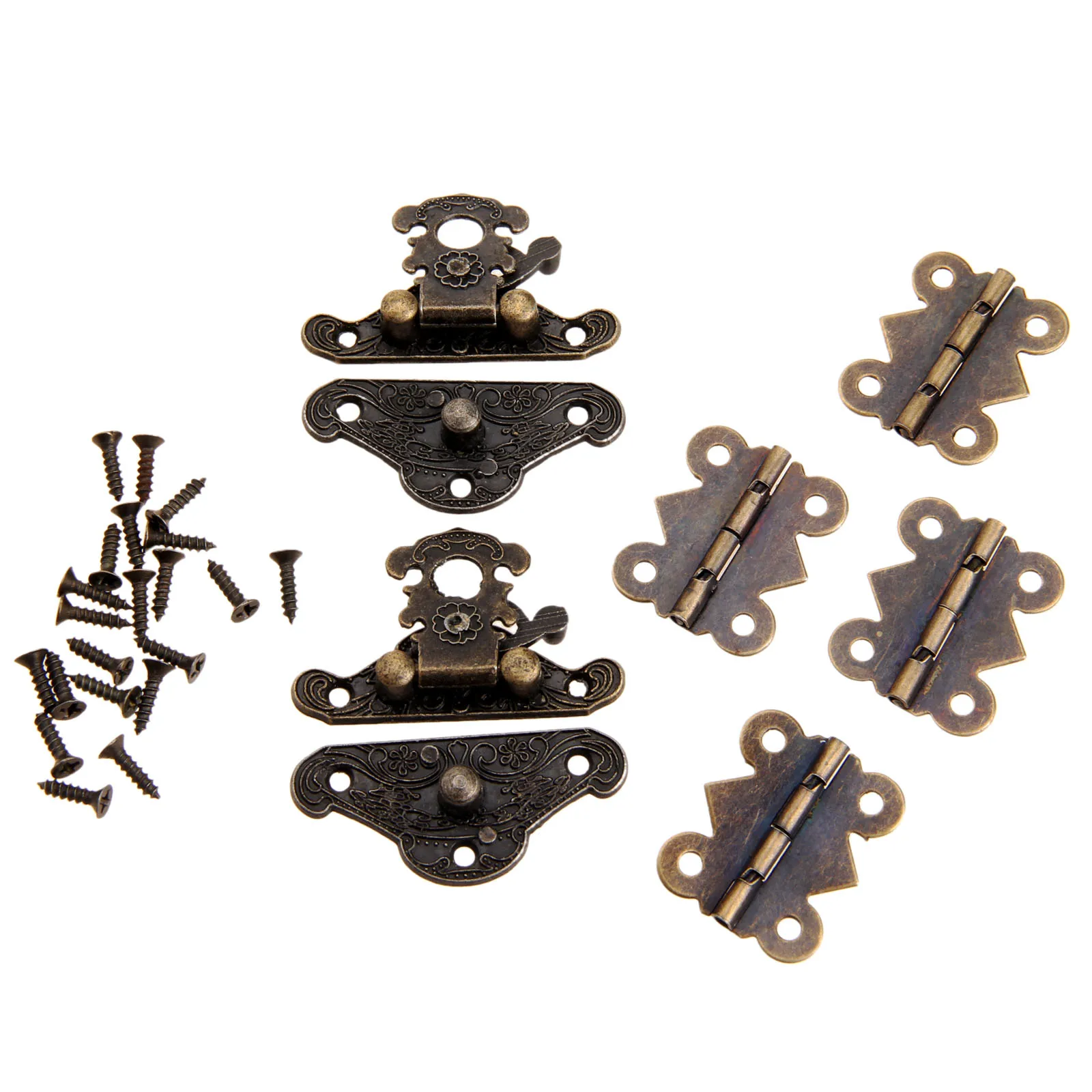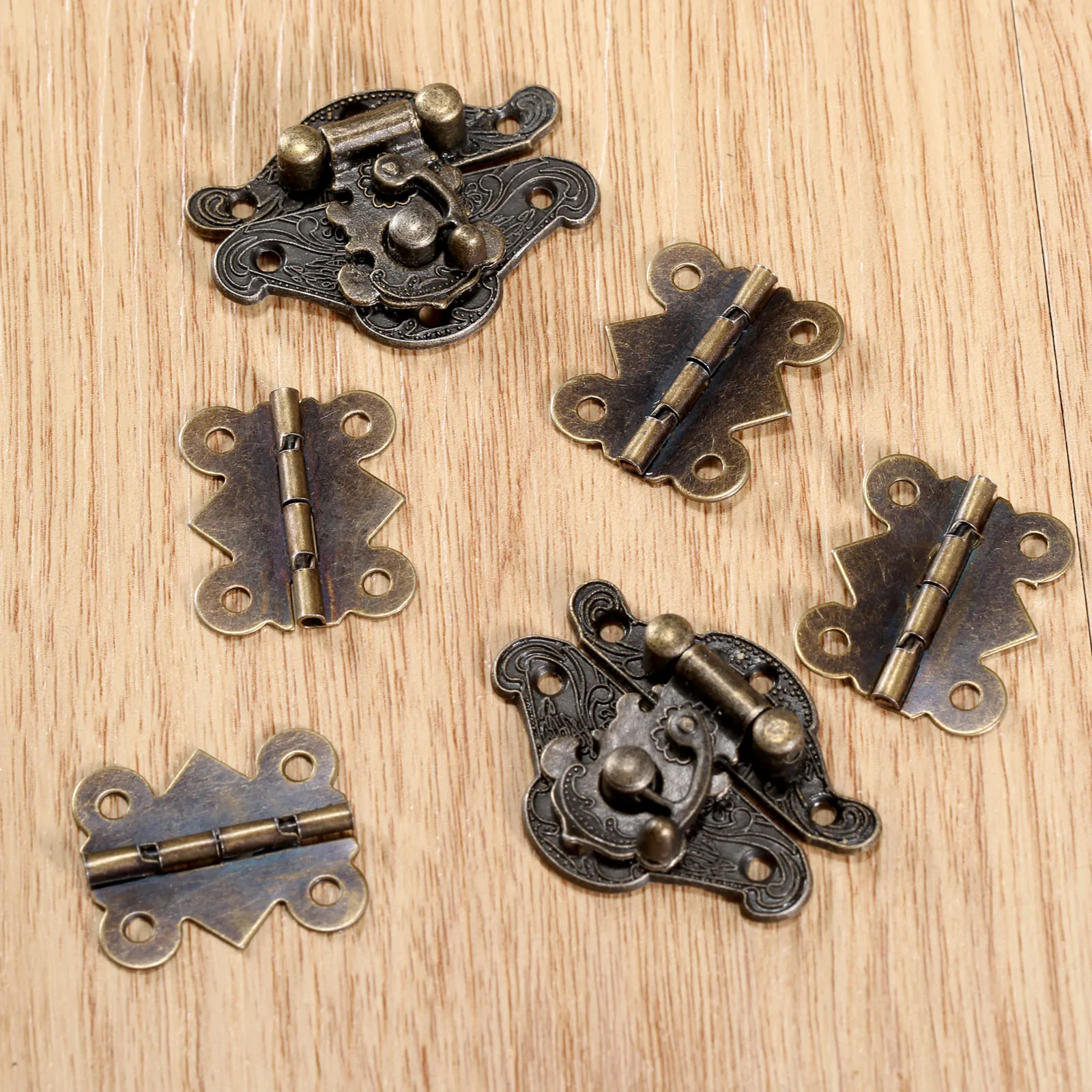 6 шт.компл. Античная бронзовая бижутерия деревянная коробка, чехол, защелка с петлями для шкафа, мебельные аксессуары, железная винтажная фурнитура