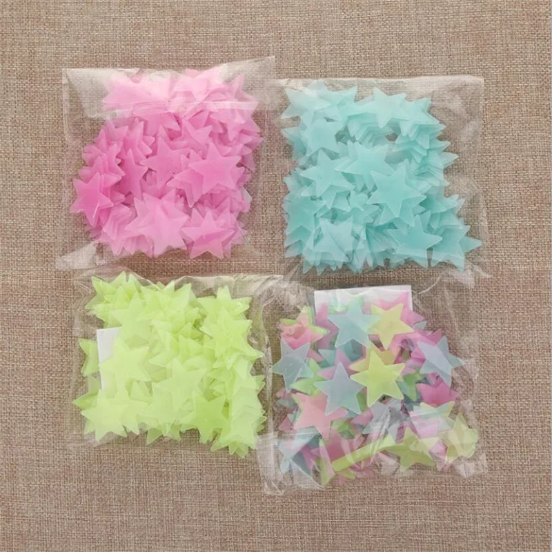 50 шт. 3D звезды светится в темноте наклейки на стену световой флуоресцентный ПВХ Wall Art Наклейки для детской Спальня потолочное украшение для дома