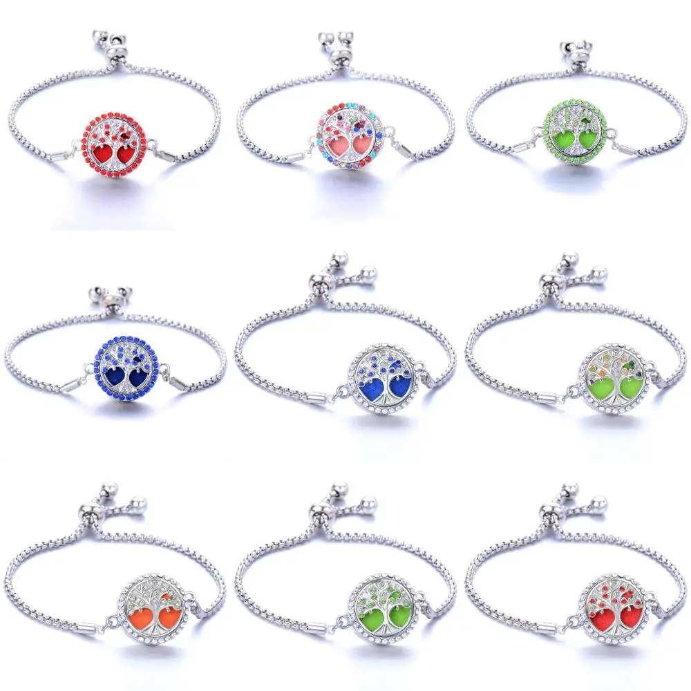 С разноцветными кристалами Дерево Ароматерапия из нержавеющей стали Браслет Регулируемый магнитный эфирного масла рассеивающий браслет для женщин