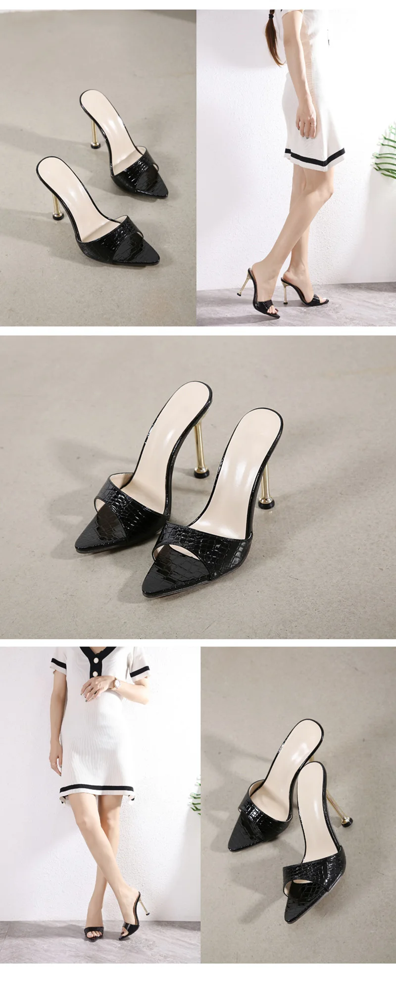 Шлепанцы женские на высоком каблуке, пикантные сандалии со змеиным ...