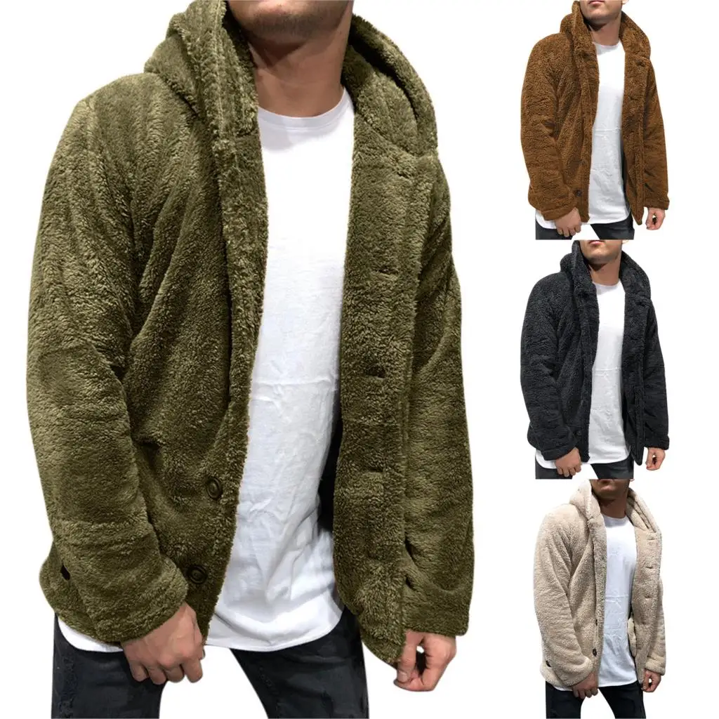 Зимнее пальто с искусственным мехом для мужчин теплая мягкая меховая куртка с плюшевой подкладкой, верхняя одежда с карманами на каждый день размера плюс Тедди пальто с капюшоном безрукавная Одежда Мужской 2021