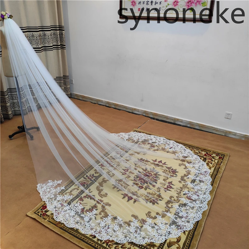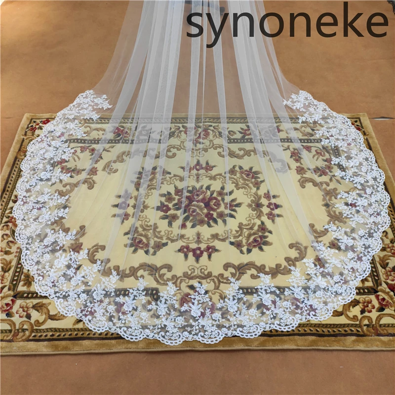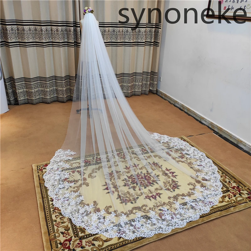 Фата свадебная длинная, 3 м, с кружевной аппликацией