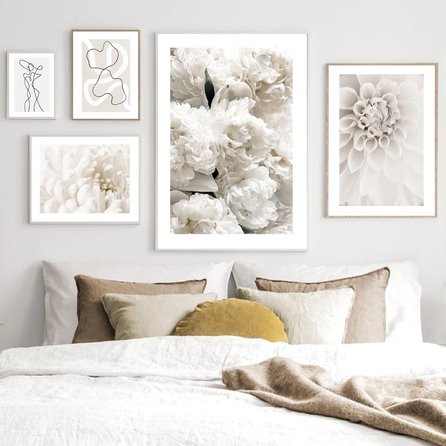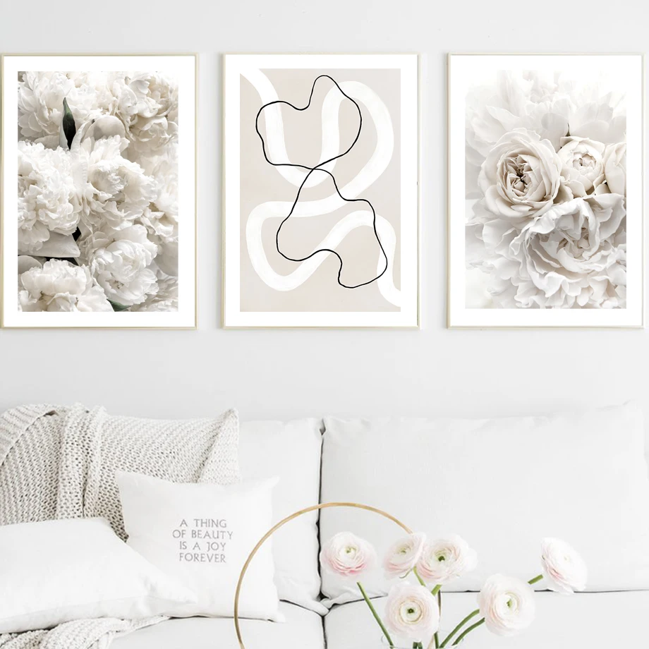 Абстрактные Фигурки линия белые розы цветы Настенная живопись холст скандинавские постеры и принты настенные картины для декора гостиной