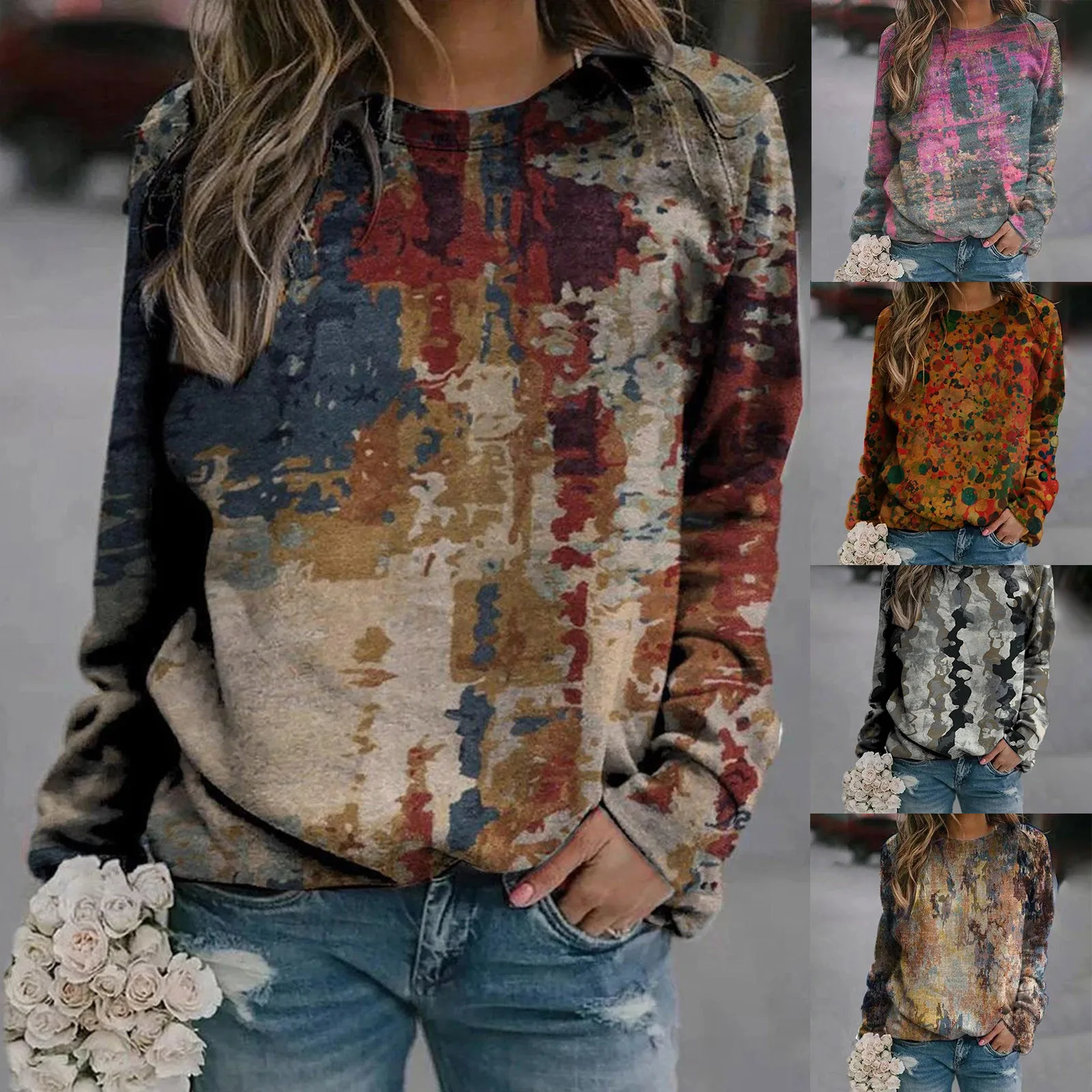 Женские повседневные толстовки с принтом, теплые футболки с круглым вырезом и длинными рукавами, свободные удобные топы-туники