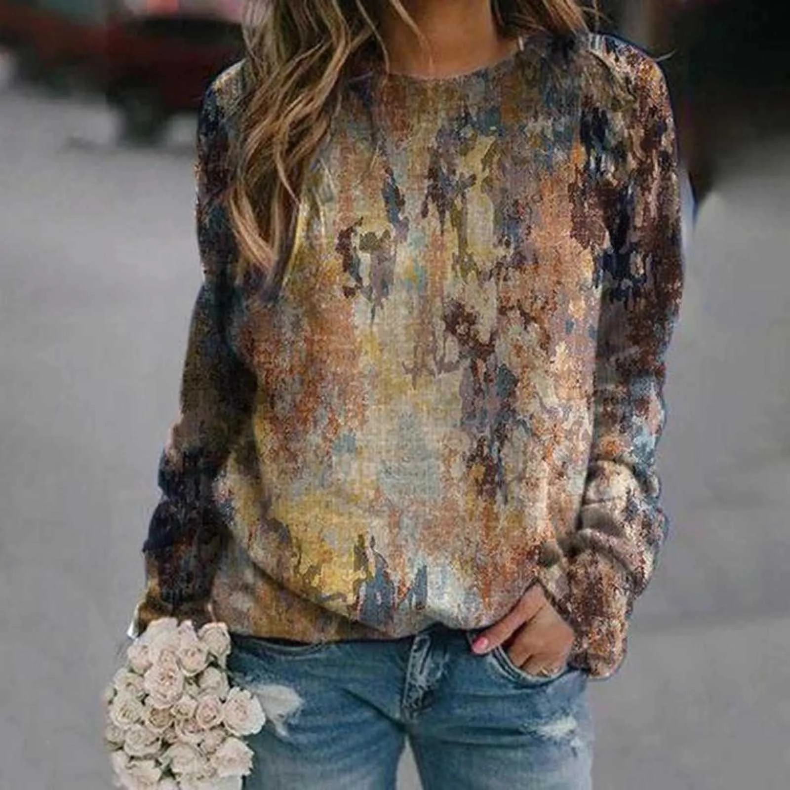Женская винтажная блузка с круглым вырезом, длинным рукавом и принт...