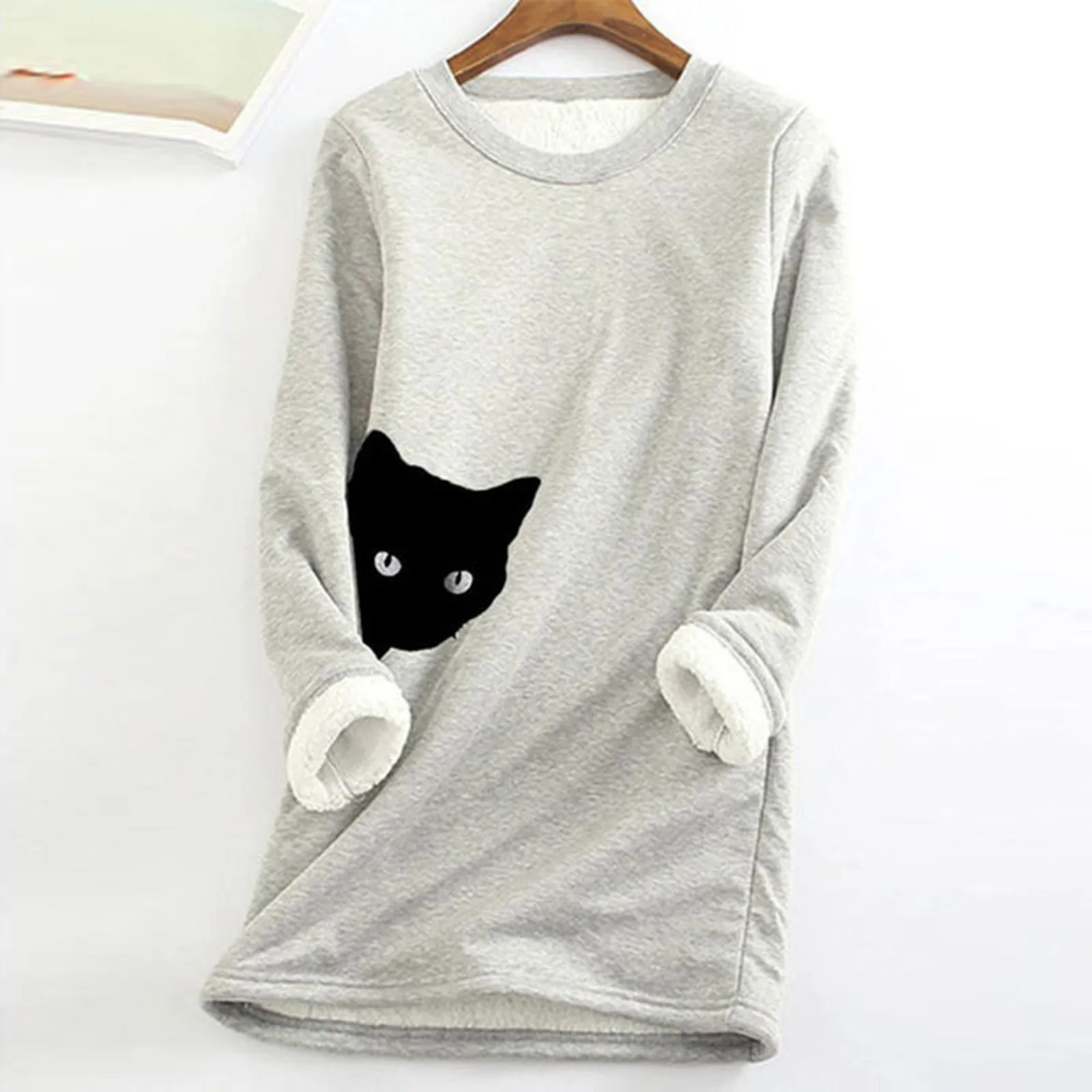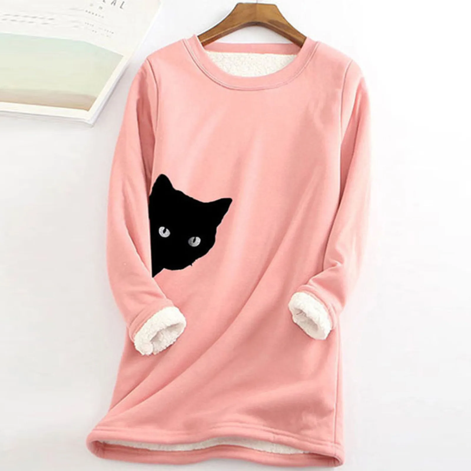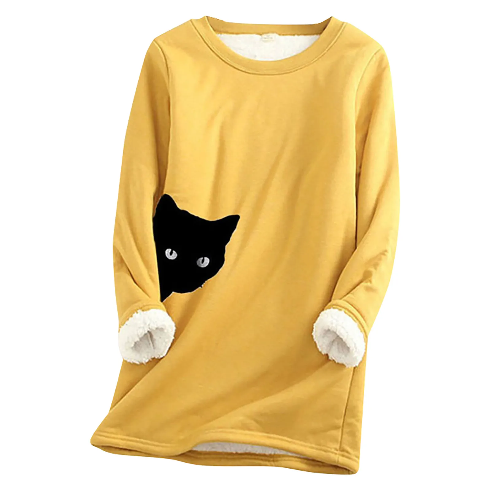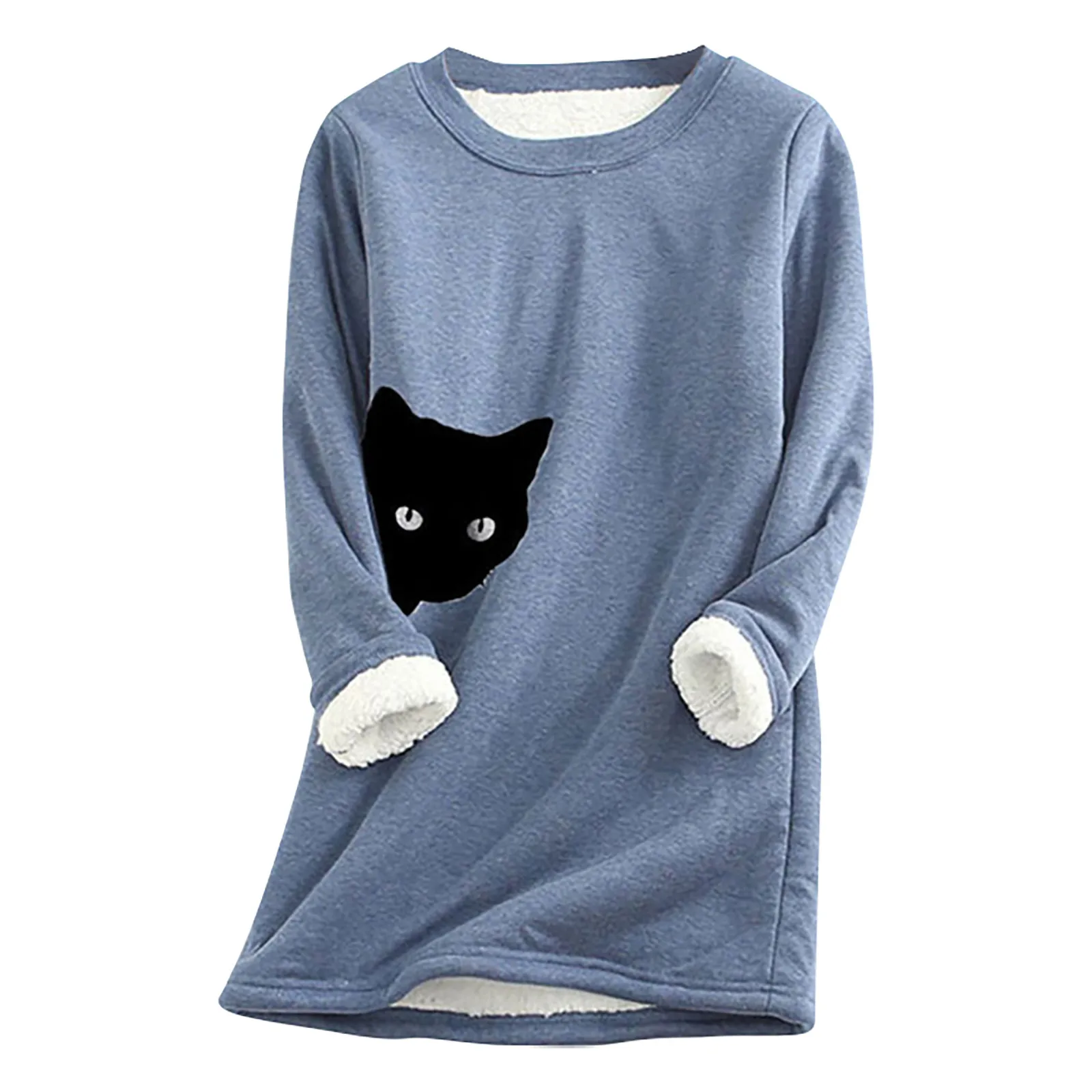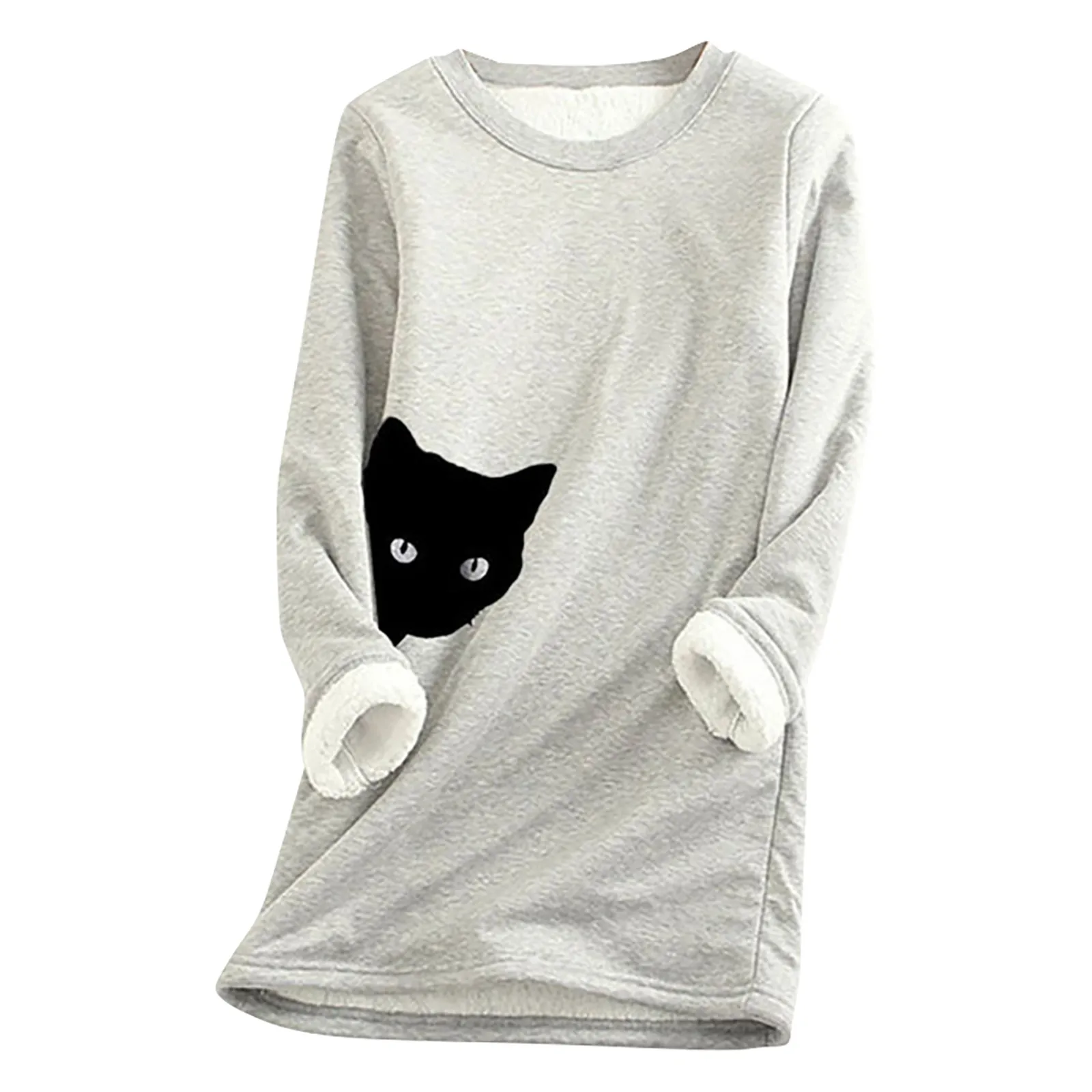 40 #2020 зимняя женская толстая флисовая толстовка с О-образным вырезом, теплые бархатные с рисунком кота нижнее белье топы S-5XL толстовки толстовка женская худи