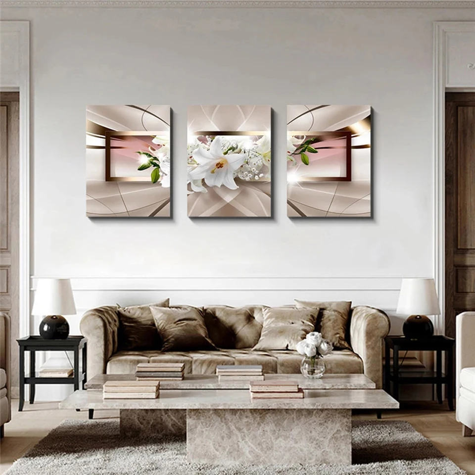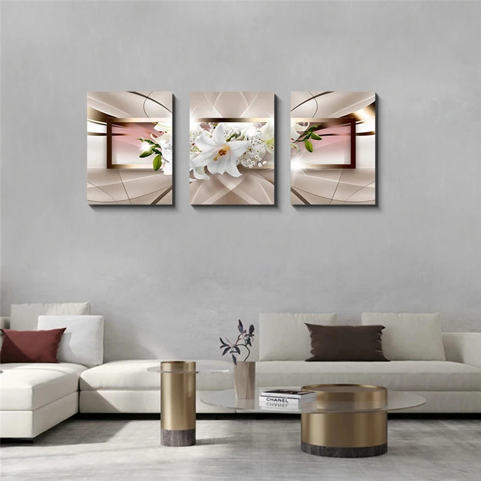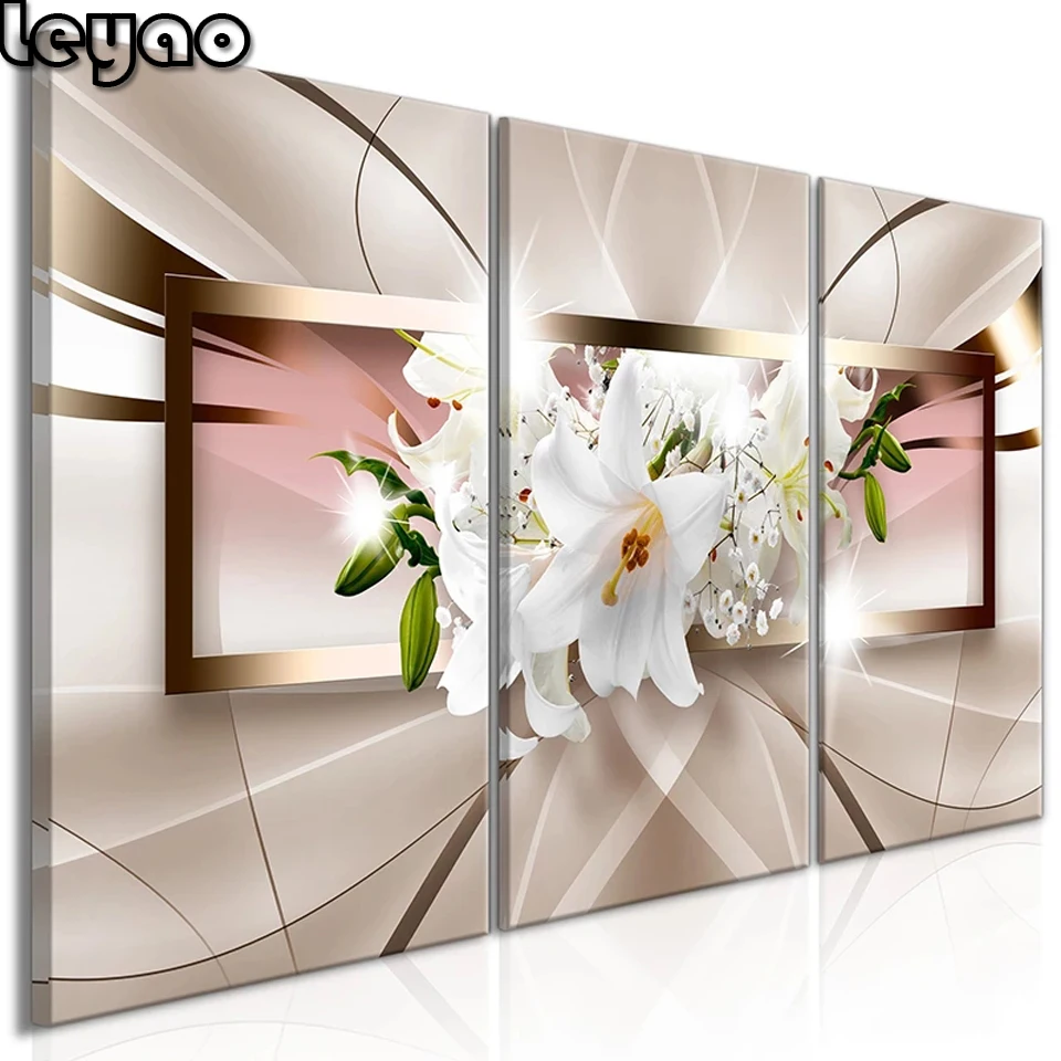 Триптих Алмазная Картина 3 шт. настенная живопись красивый абстрактный цветок лилии полный квадрат/круглая Алмазная вышивка для гостиной