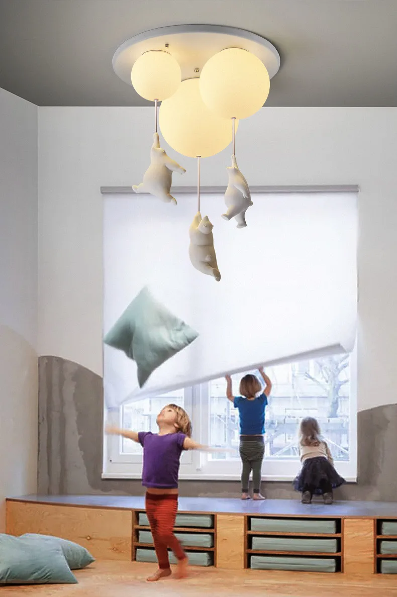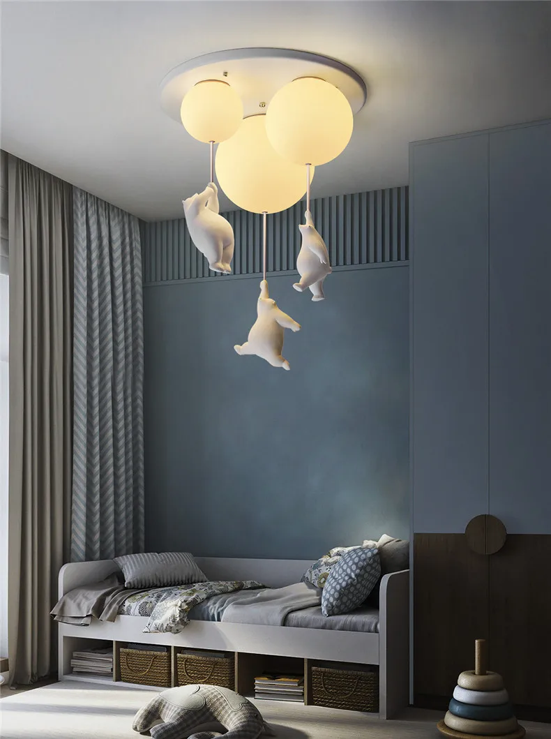 Скандинавский минималистичный потолочный светильник с белым медведе...