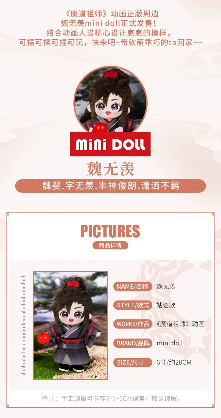 Кукла Плюшевая с аниме неутомительный магистр демонического культивирования, 20 см