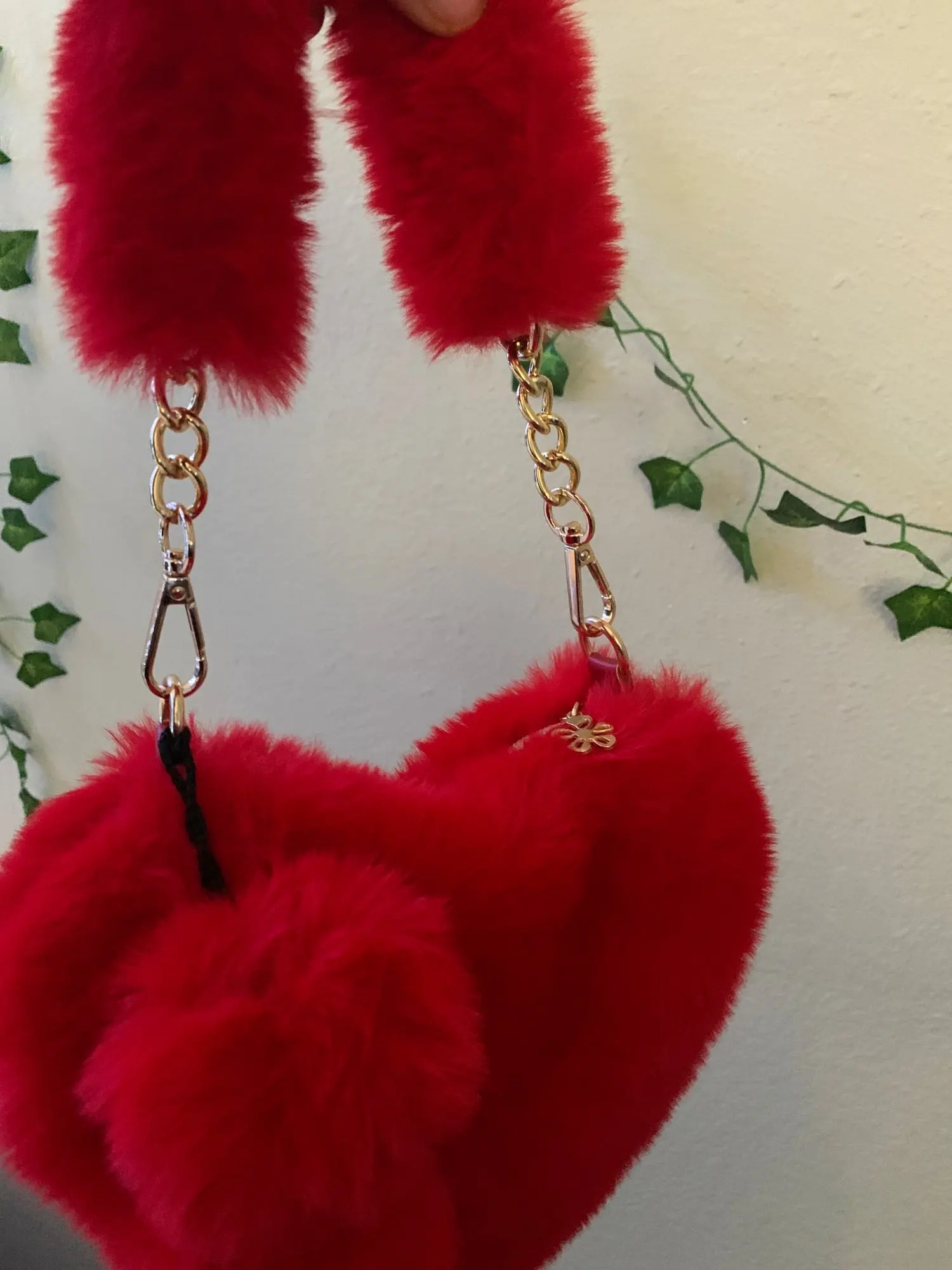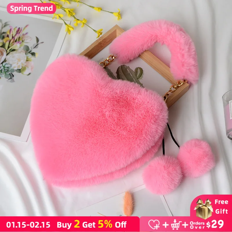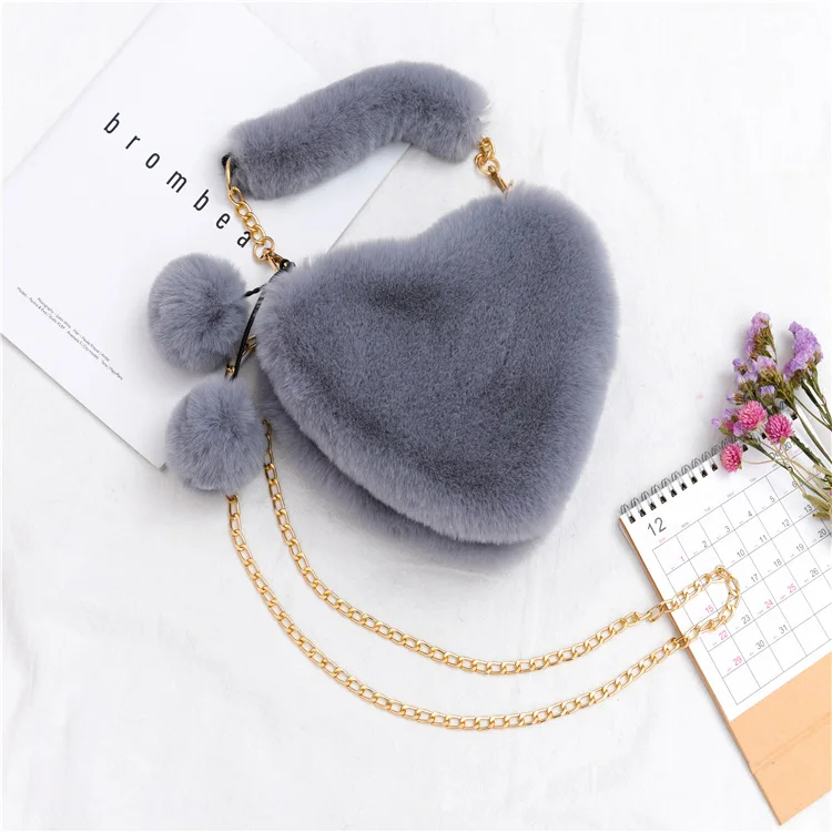 Роскошные женские маленькие сумочки из искусственного меха в форме сердца, пушистая плюшевая женская сумка на плечо с цепочкой, модная женская пушистая Повседневная Сумка-клатч, кошелек