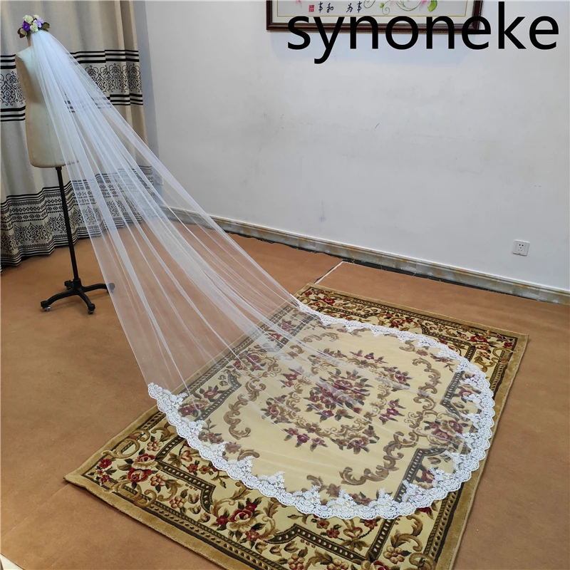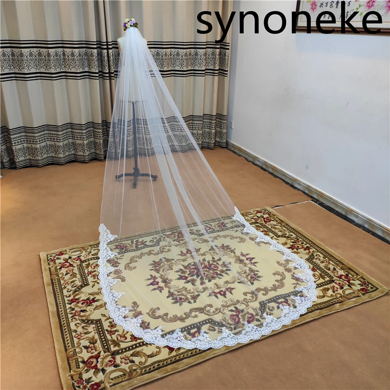 Фата невесты с кружевным краем, длинная, с гребнем, 3 метра, Мантилья свадебная вуаль