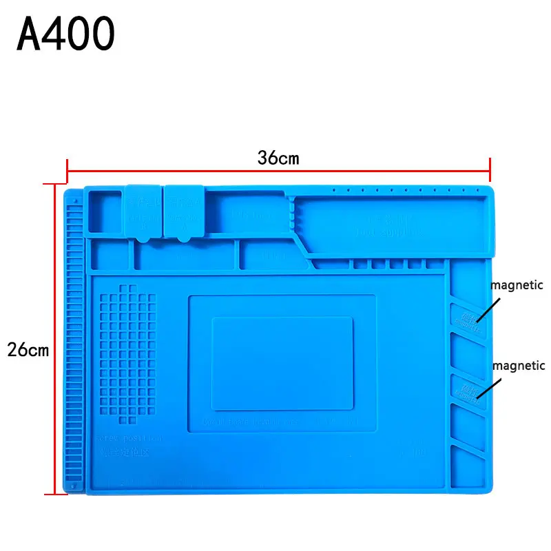 S-160 паяльная станция 45x30 см, железный телефон, ПК, компьютерный ремонт, коврик, магнитная теплоизоляция, Силиконовая накладка, настольная платформа, коврик, добавленная линейка встроенных весов (0 ~ 36 см), 124 положения винтов и 3 шт части коробки с крышкой, 18 выемки, чтобы сделать вашу работу легкой.Он устойчив к коррозии и не имеет формы, изготовлен из высококачественного силикона.