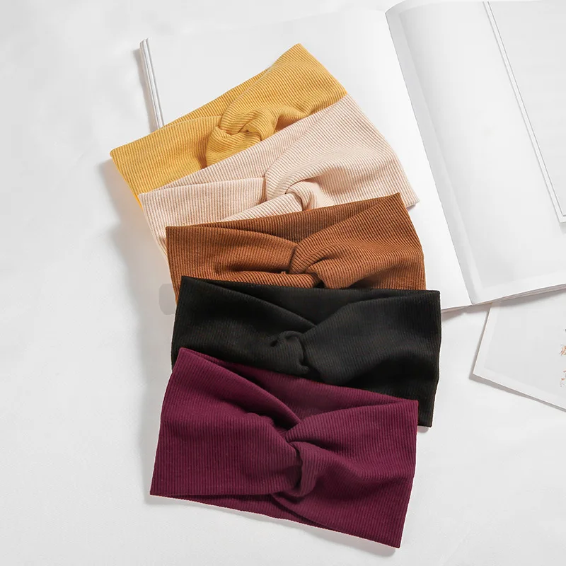 Детская мягкая эластичная хлопковая повязка на голову с широким узлом, однотонные детские вязаные аксессуары для волос