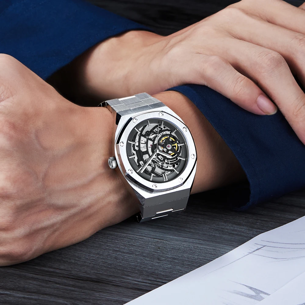 CADISEN Роскошные Лидирующий бренд NH70A автоматические механические мужские часы повседневные с выдалбливающим циферблатом наручные часы водонепроницаемые Relojes Hombre
