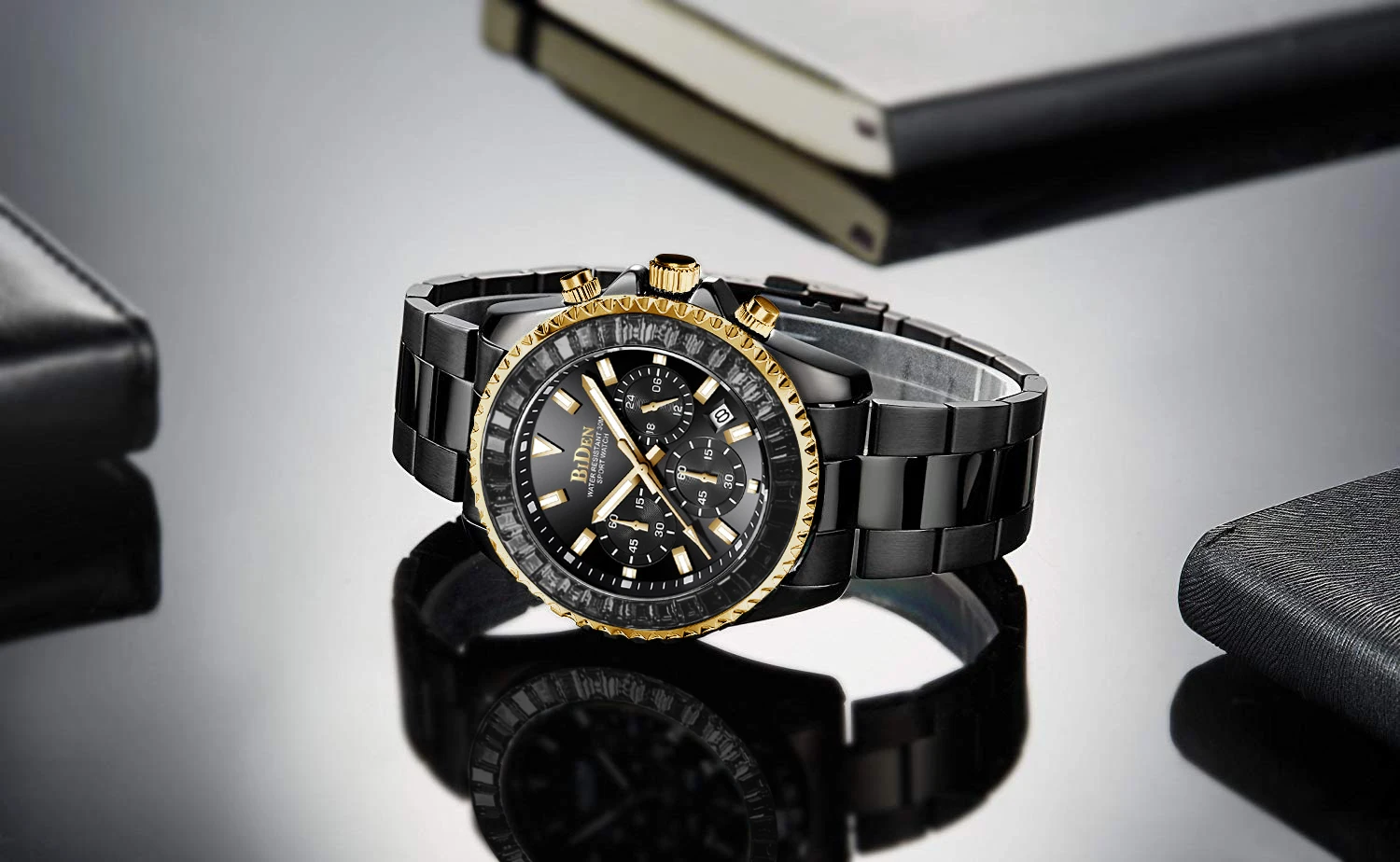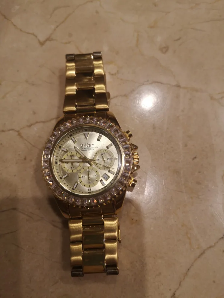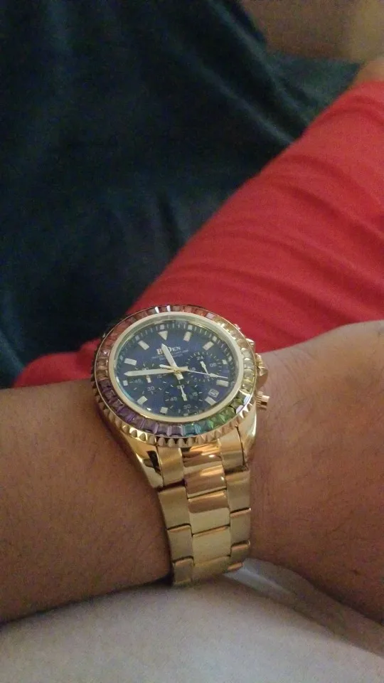 Красивые часы и темный браслет выглядит шикарно с золотым кругом! Моему мужу это нравится! Водонепроницаемый в и маленький аксессуар для уменьшения Ссылок! Топ-топ