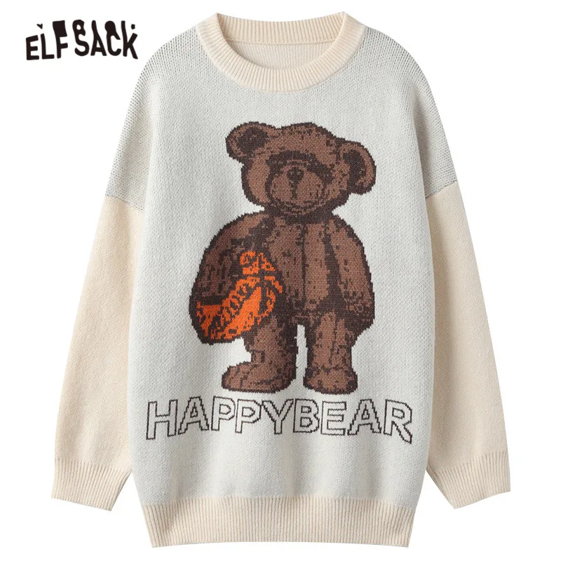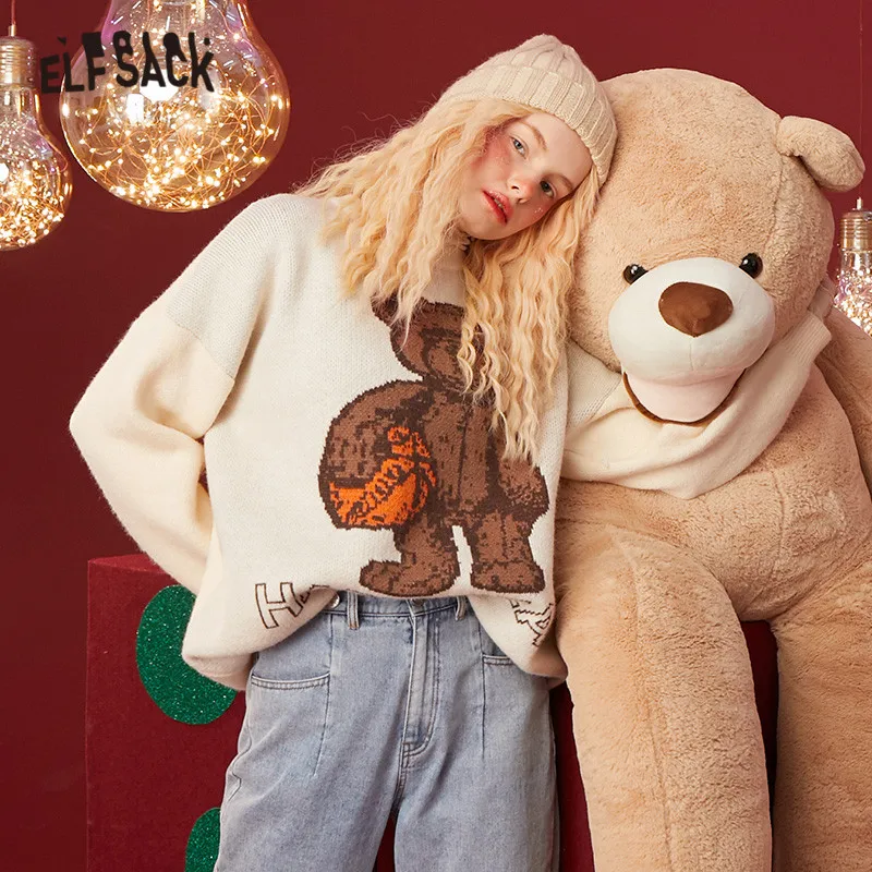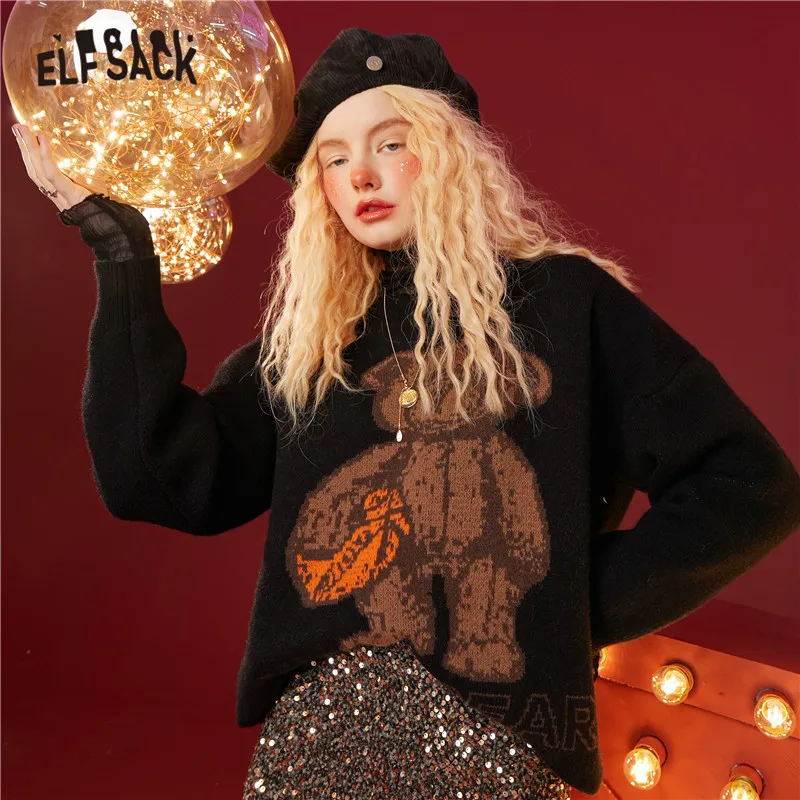 Женский Повседневный трикотажный пуловер ELFSACK Harajuku, зимний винтажный пуловер с длинными рукавами ELF, корейский женский топ, 2021