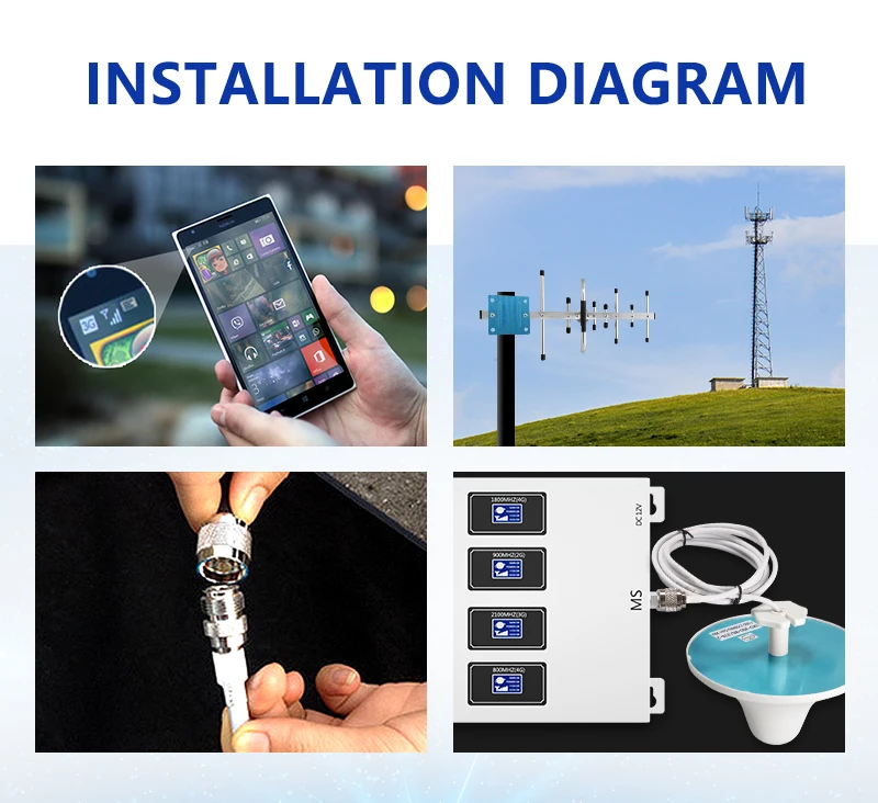 Простота установкиУсилитель сигнала B20 800 MHz + GSM900MHz + DCS1800 Mhz + WCDMA2100MhzЧетырехдиапазонный усилитель сигнала,Обычно частота составляет 2G + 3G + 4G полное покрытие.Усилитель сигнала может улучшить сотовый телефон 4G singal.Частота Тис обычно используется в России, Украине, Испании, Франции, Европе и т. Д.Если частота не правильная, усилитель сигнала не может работать.Пожалуйста, проверьте частоту вашего оператора перед размещением заказа.