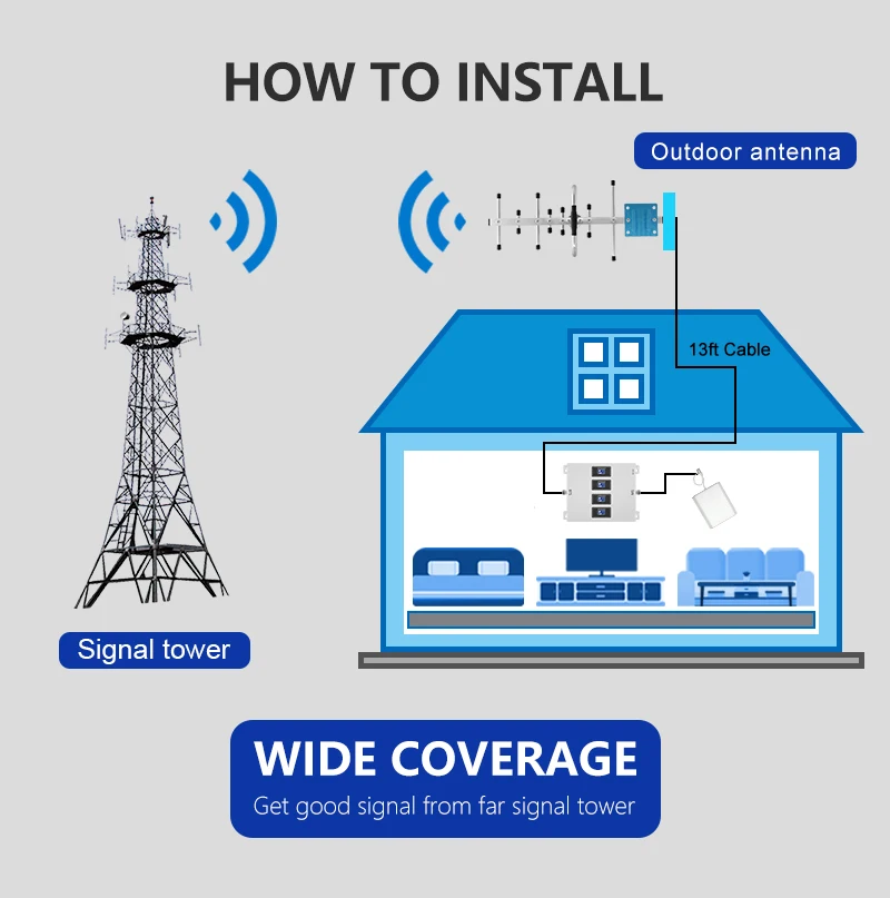 Шаг 1: Найдите положение, в котором можно получить хороший сигнал (более сильный, чем-70 дБ), параллельно установив наружную антенну на этом месте, в направлении к базовой станции или сотовой башне.Шаг 2: Используйте кабель 10 м для подключения наружной антенны и бустера. Убедитесь, что они были затянуты, соединены хорошо.Шаг 3: Подключите внутреннюю антенну и бустер singal.Шаг 4: после завершения всех деталей проверьте погоду всех разъемов, затем можно включить питание