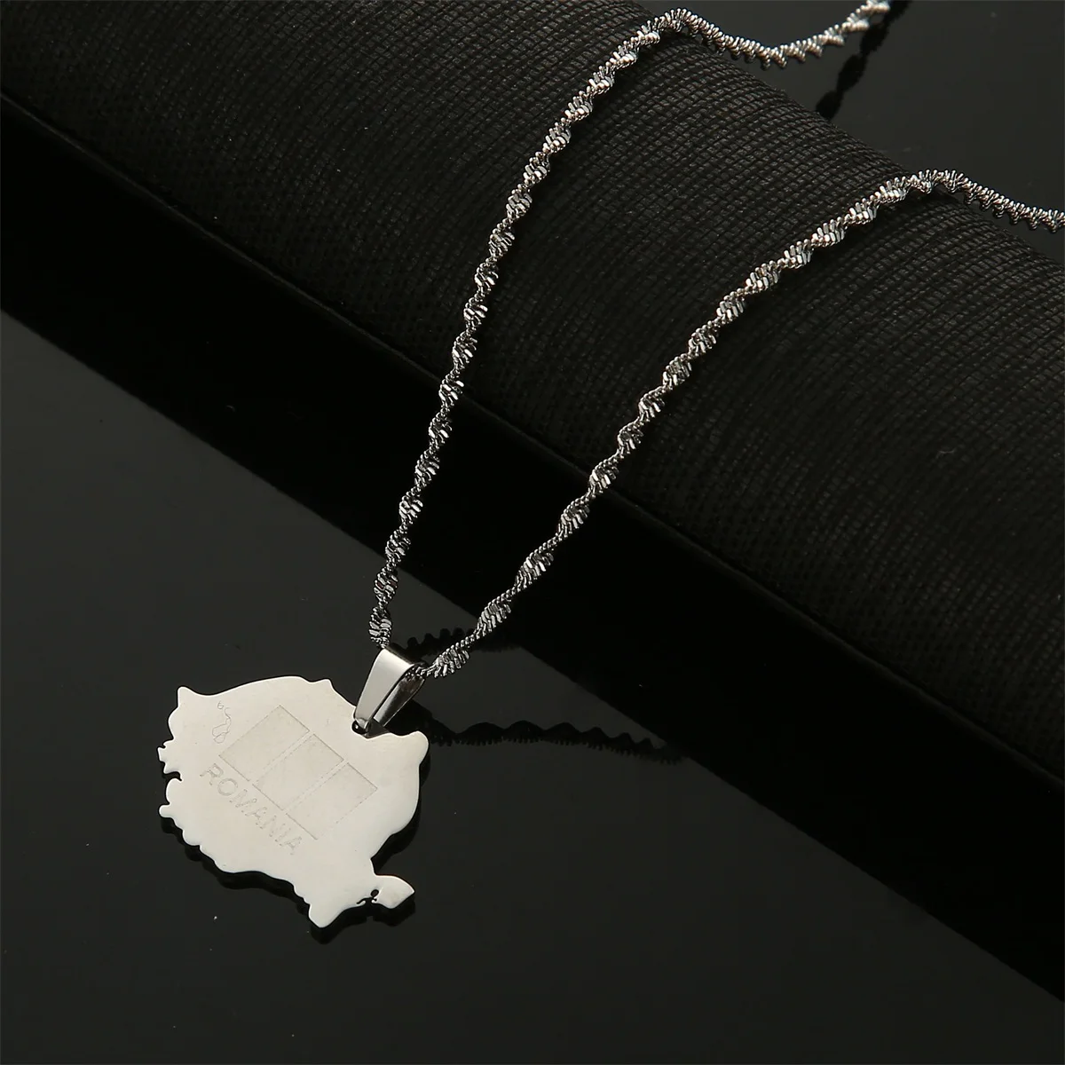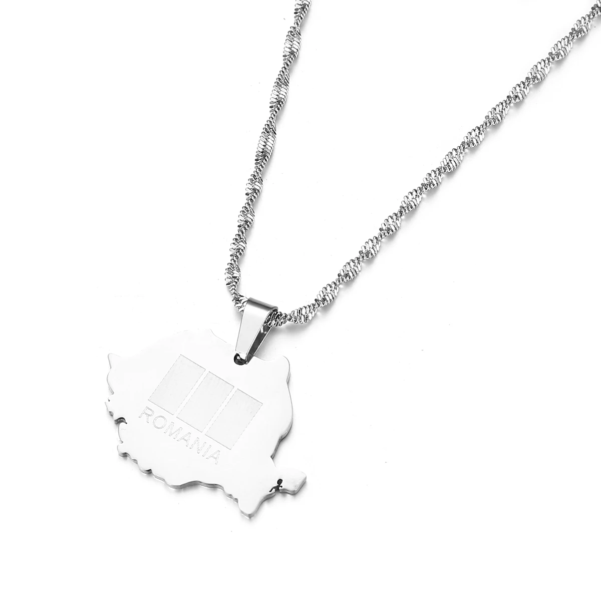 Подвеска из нержавеющей стали в румынском стиле с картой серебряного цвета, Румынская карта, цепочка, ювелирное изделие, подарок