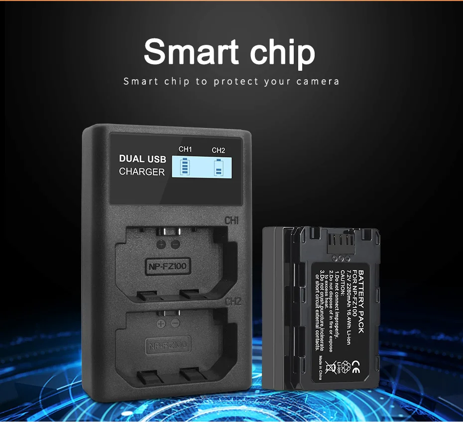 2280 мАч, NP-FZ100 NPFZ100 Камера Батарея 7,2 V + LED двойной слот ...