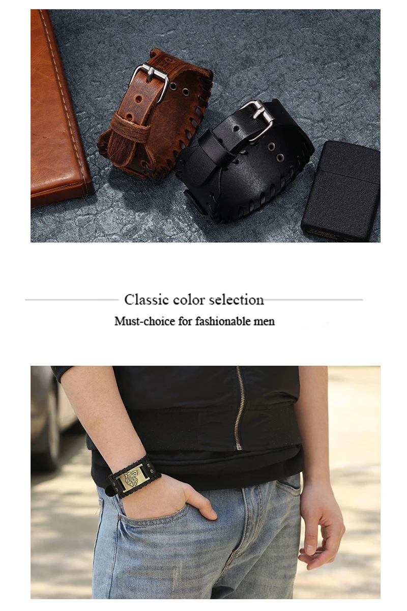 Панк Широкий браслет из натуральной широкий кожаный браслет Компас ...