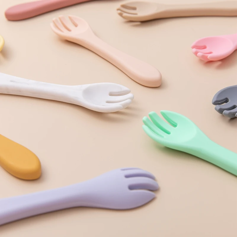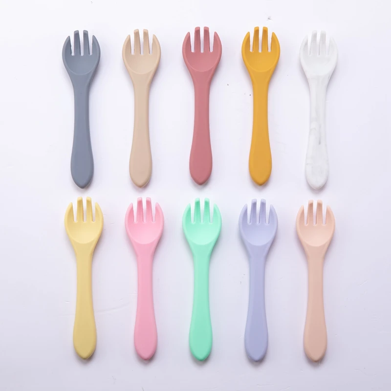 1 шт. детская ложка из мягкого силикона, вилка набор для кормления малыша посуда для новорожденных, детей ясельного возраста, аксессуары для кормления вилка силиконовые столовые приборы детские товары