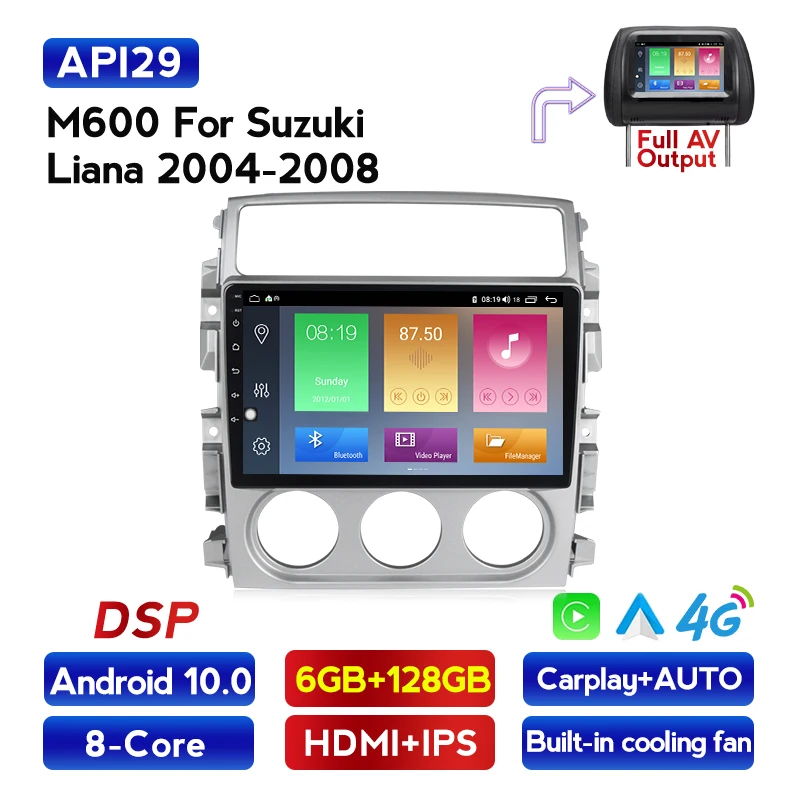 Автомагнитола для Suzuki LIANA 2006 -2013, мультимедийная система, Android 10,0, 4G LTE, 9 дюймов, 2,5D сенсорный экран, Wi-Fi, 2din, gps-плеер