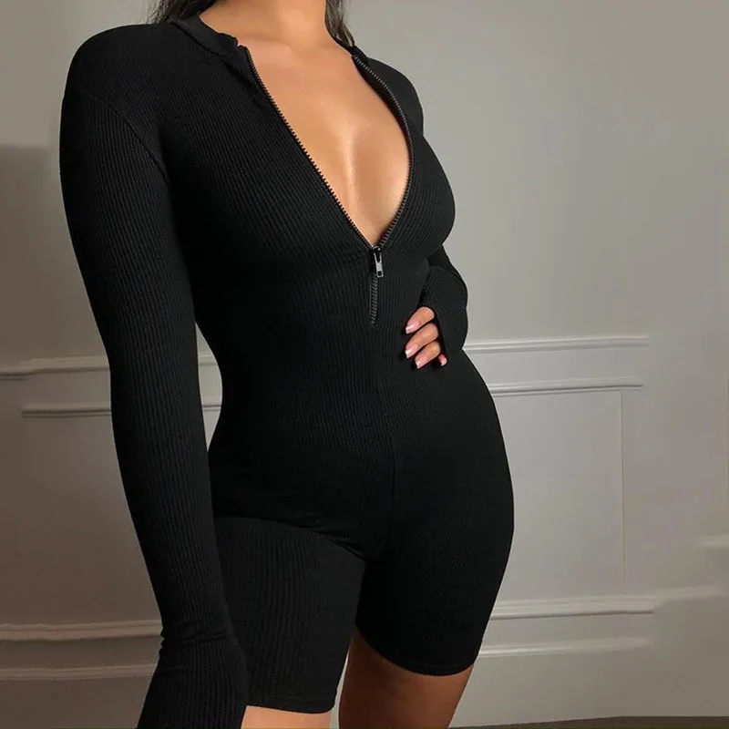 Лидер продаж 2022, новинка, Однотонный женский пикантный комбинезон на молнии, боди с длинным рукавом, комбинезон на удачу с этикеткой, женские комбинезоны