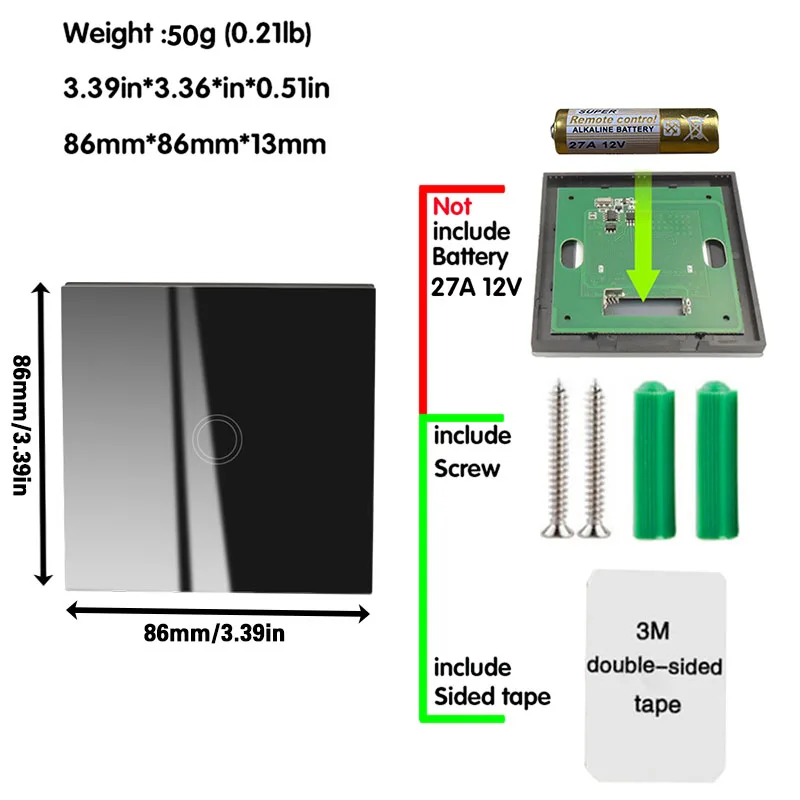 Переключатель Diese 86, Беспроводной Выключатель с сенсорным управлением, 433 МГц, 90-250 В переменного тока, 10 А