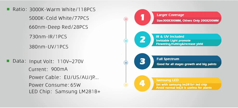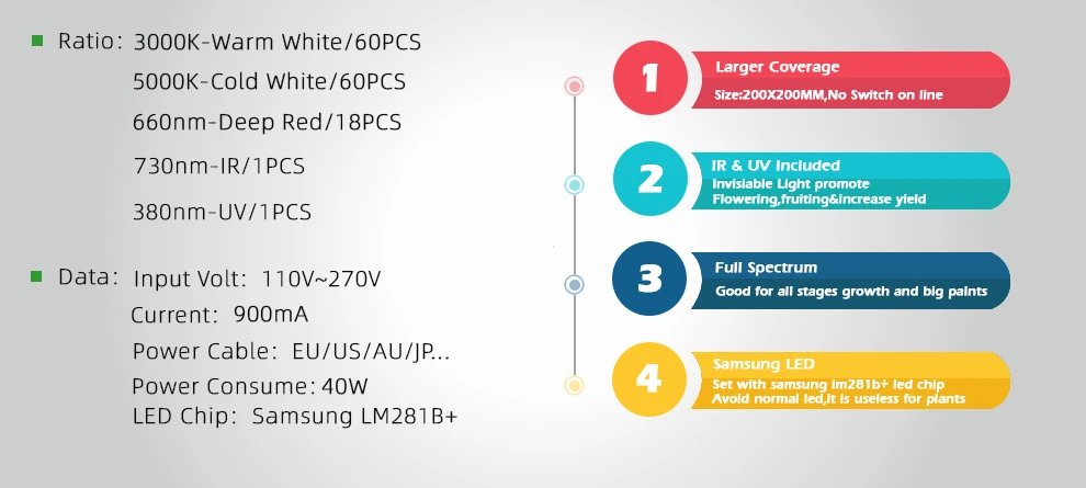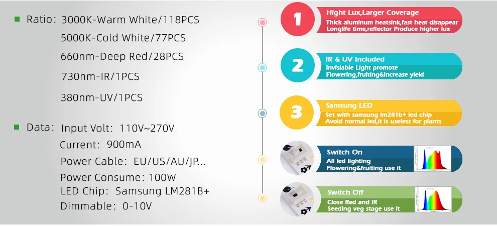Светодиодный светильник Samsung LM281b +, 800 Вт, диоды бесшумные, без вентилятора, полного спектра, с высоким PPFD для покрытия 5x5 футов, для растений и цветения