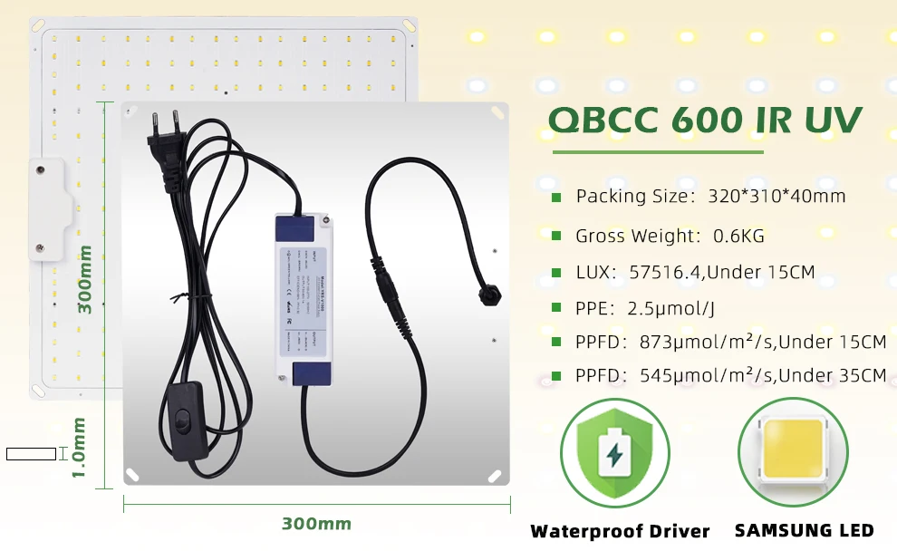 600 ватт супер быстрая доставка бонусный подвесной комплект и рулетка, супер яркая Квантовая доска, высоко ценится этому продавцу. Протестированный свет для тепла на водителе и все в порядке, для мощности 600 Вт вау потрясающий, не ожидайте чудеса, но легко вырасти что-то маленькое или сохранить Материнское растение. Цена очень низкая, только драйвер стоит того количества, висящий комплект iworth $20 отдельно. Поторопитесь. Я куплю больше.