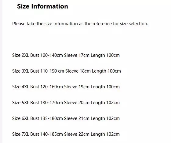 Размер 6XL бюст 135-180 см рукав 21 см Длина 102 см