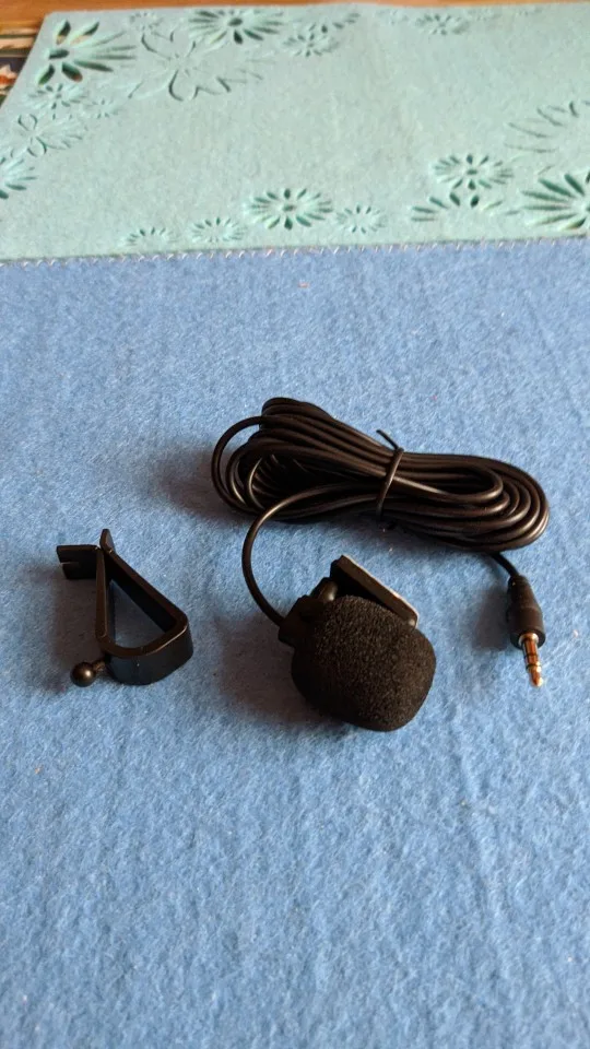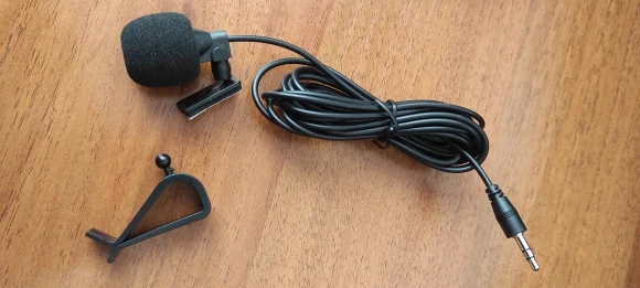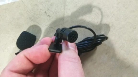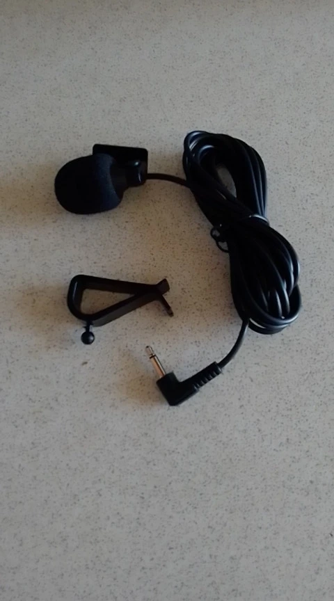 Микрофон рабочий. Гораздо лучше, чем встроенный в китайское ГУ. Шнур длинный. Поставил над зеркалом заднего вида - еще запас остался.