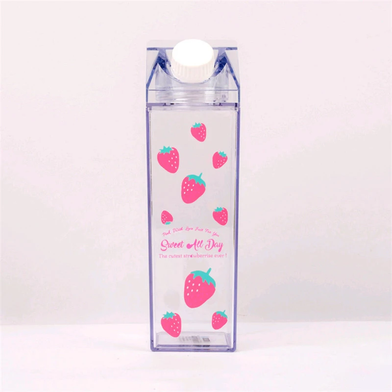 500 мл креативный милый пластиковый прозрачный картон для молока бутылка для воды модная Клубничная прозрачная коробка для Молока бутылка для сока