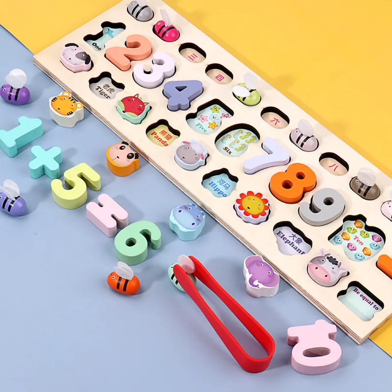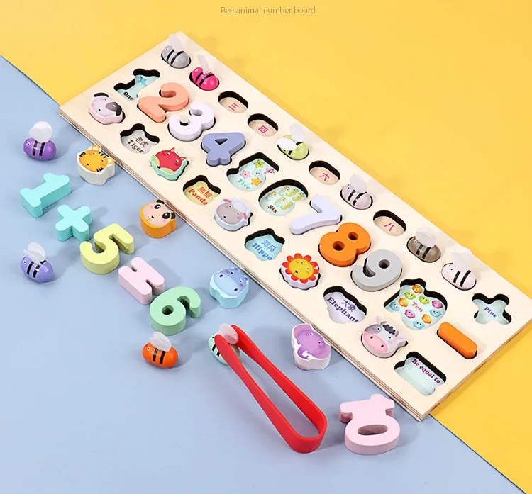 Деревянная арифметическая игрушка Монтессори, детское животное, цифры, маленькая пчелка, цветная познавательная доска для раннего обучения, логарифмическая доска