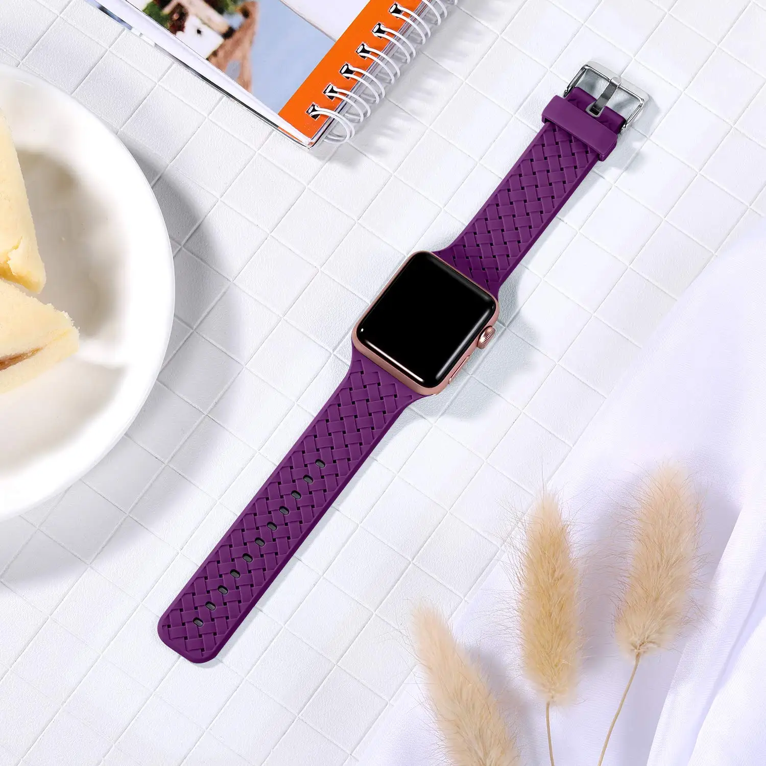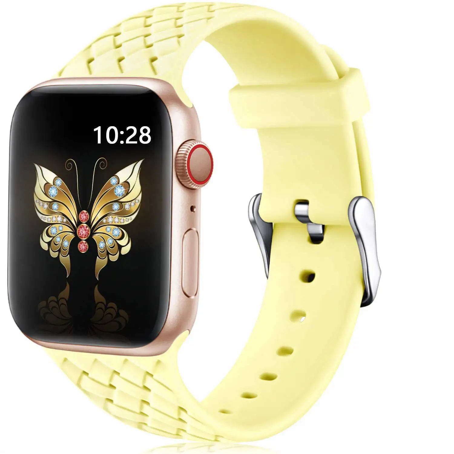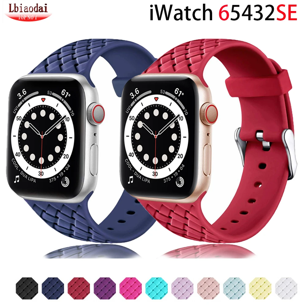 Ремешок силиконовый для Apple watch 6 band 44 мм 40 мм 42 мм 38 мм, плетеный браслет с узором для iWatch band series 5 4 3 SE, аксессуары для часов