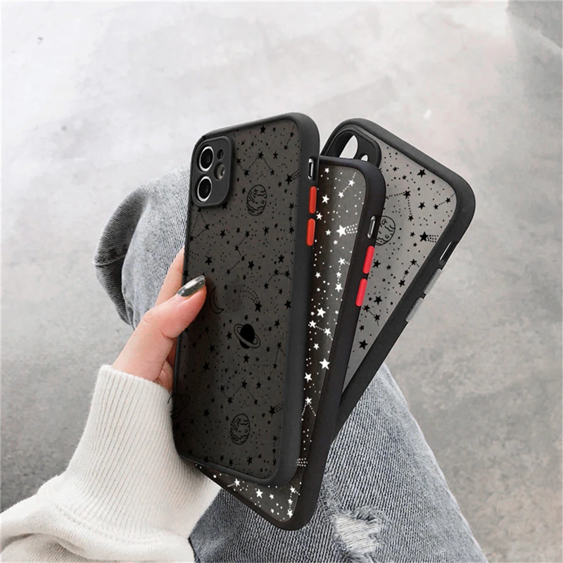 Чехол для iPhone 12 Pro Max, 13, 11 Pro Max, 7, 8 Plus, XS Max, XR, 12 Mini, X, SE2020, прозрачный, с изображением звездного неба
