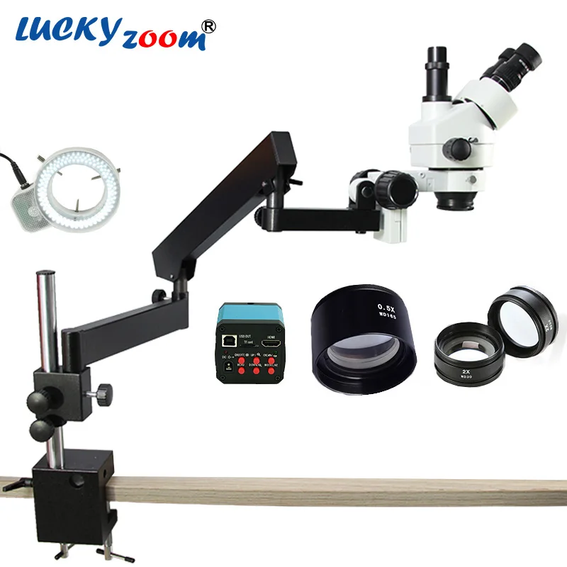 Lucky Zoom Новый профессиональный Тринокулярный Стерео микроскоп с зумом 3.5X-90X гибкий артикуляционный тринокулярный микроскоп 14MP HDMI камера набор Microscopio