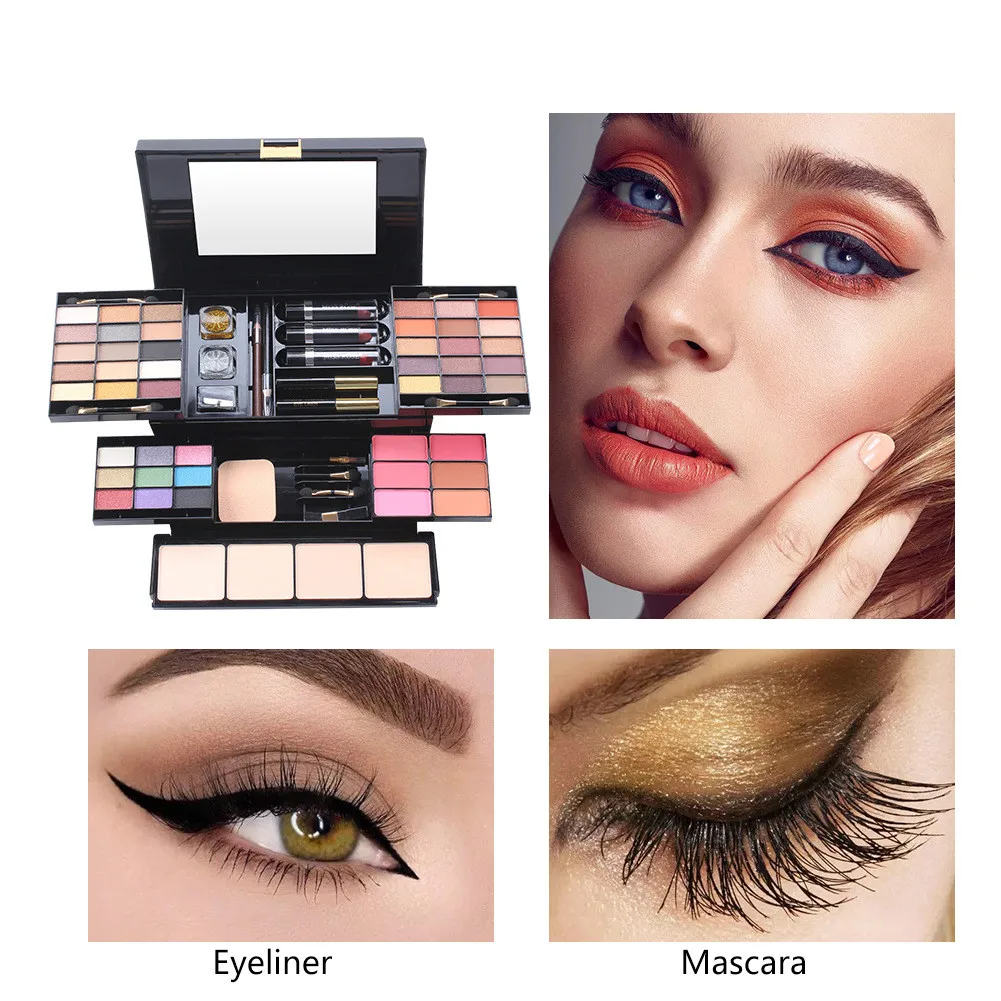 Профессиональный набор для макияжа, 39 цветов, разноцветные блестящие матовые стойкие тени для век, палитра румян, мощная губная помада, макияж для женщин