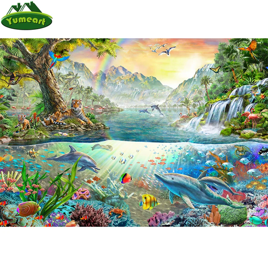Алмазная 5D картина сделай сам, дельфин, рыба, полная квадратная картина, подводный мир, алмазная вышивка крестиком, мозаика, домашний декор, подарок