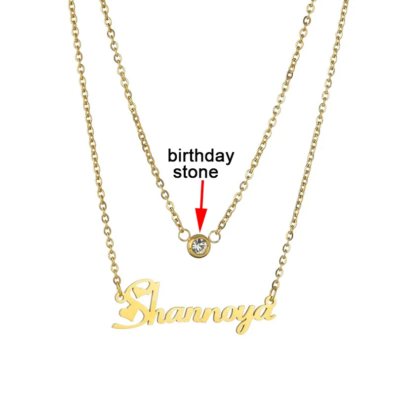 Название:Персонализированные индивидуальные ожерелья на день рождения камень из нержавеющей стали двойной слой имя ожерелья колье ювелирные изделия ожерелья для женщинМатериал: нержавеющая стальОсновной цвет: золотой цвет/стальной цвет/розовое золото золотой цветСлучаи: Годовщина, помолвка, подарок, вечерние, свадьба, день рождения, школаФункция: друзья/пары/Влюбленные/Мама/девушка/Дети/дочь