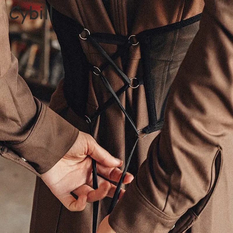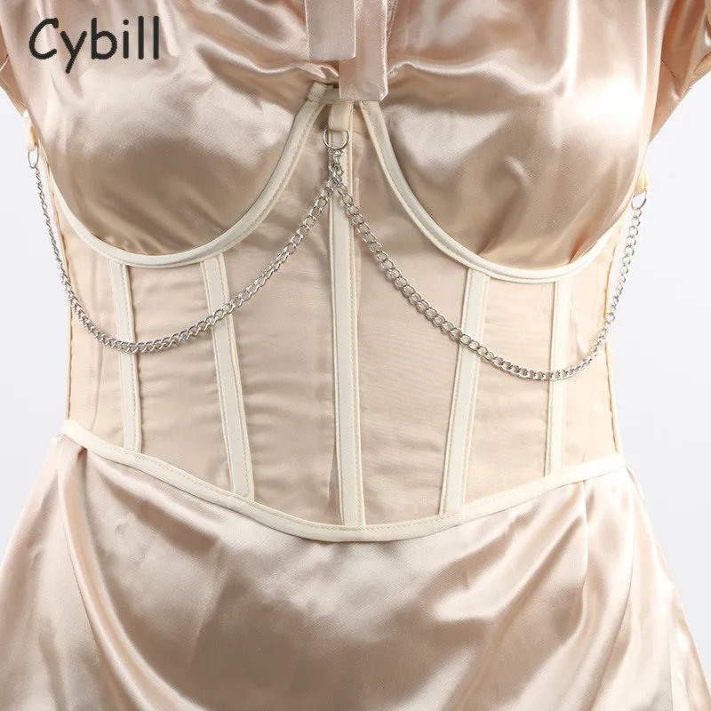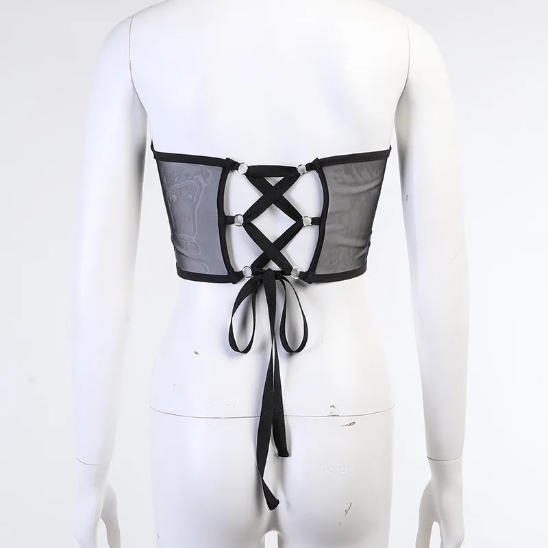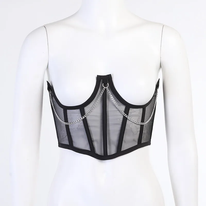 Женский укороченный топ Cybill, черный бюстье из сетчатой ткани топ на шнуровке с цепочкой, вечерний топ с запахом