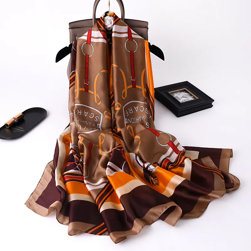 2021 популярная женская шаль с принтом цепей, элегантный шарф, модный шарф x 90 см, женский пляжный шелковый шарф-имитация