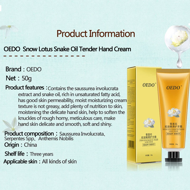 OEDO Snow lotus Snake Oil, для нежных рук крем, отбеливающий, гидрат, питательный, антивозрастной, восстанавливающий, грубый уход за руками, 30 г