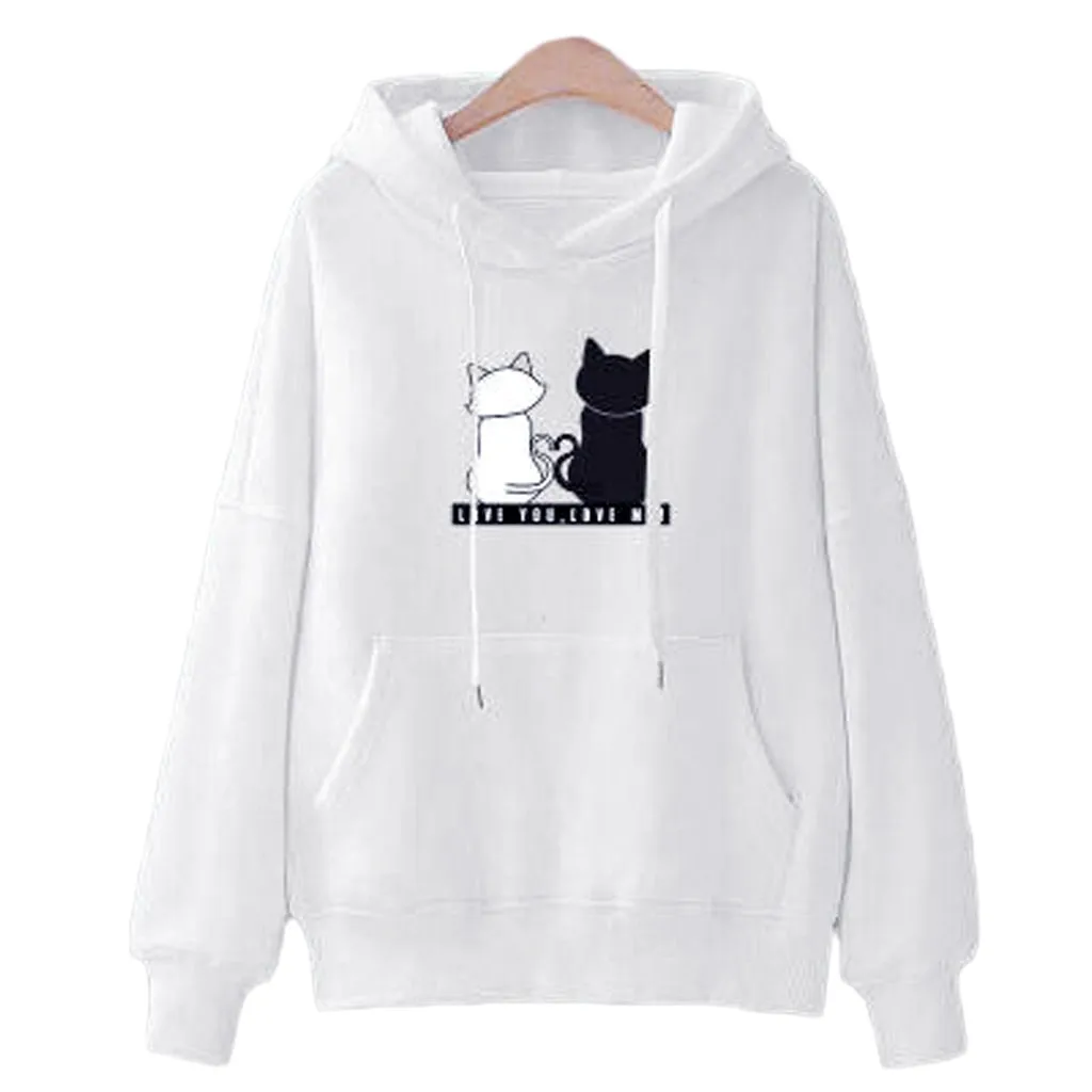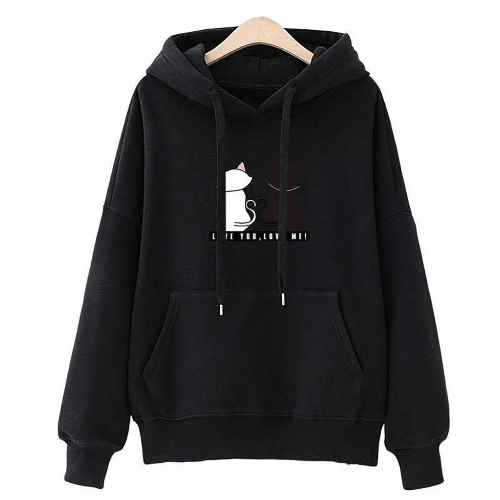 Женские толстовки, Повседневная Толстовка, зимний женский мешковатый джемпер с котом, пуловер, топы