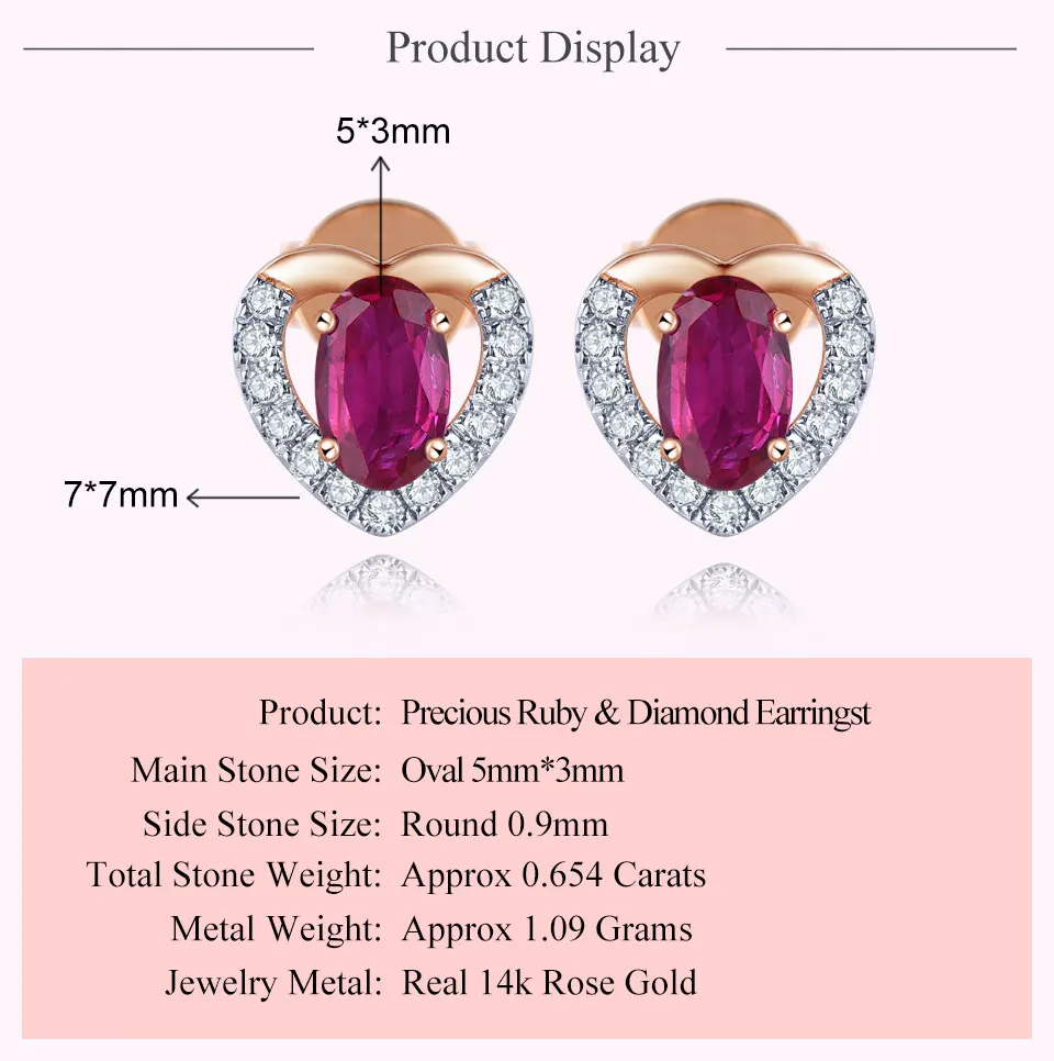 LP 14 K покрытое розовым покрытые настоящим золотом серьги-гвоздики натуральный без подогрева рубин и бриллиантами серьга сердца Форма ювелирные украшения для женщин изысканный подарок