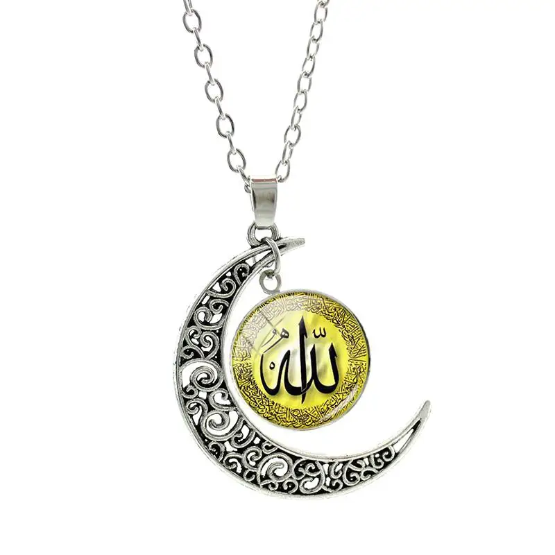 JOINBEAUTY Ислам Мусульманский Бог кулон ожерелье луна кулон Круглый купол стеклянный ожерелье звено цепи мусульманские Сокровища ювелирные изделия NT455