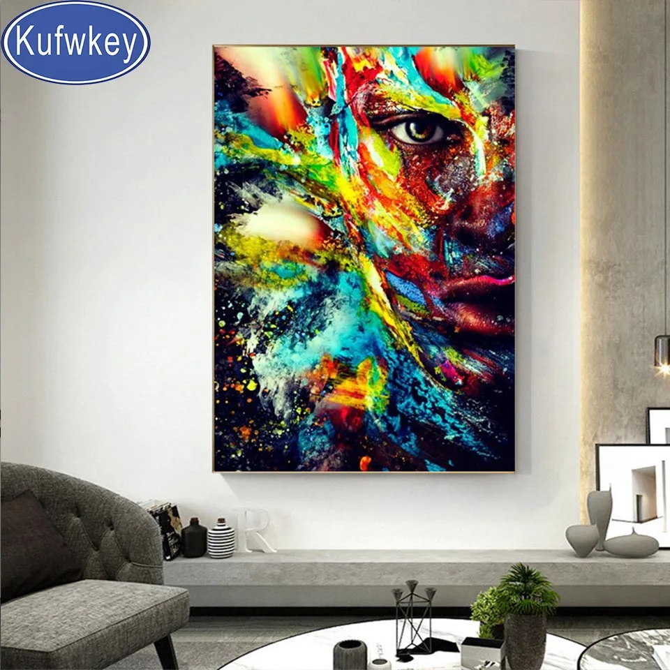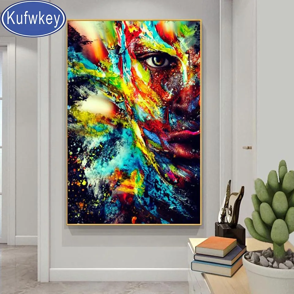 Алмазная живопись сделай сам, красочная женщина, половина лица, полностью квадратная, круглая 5D алмазная вышивка крестиком, мозаичная наклейка, подарок для дома